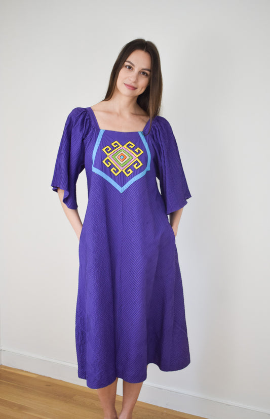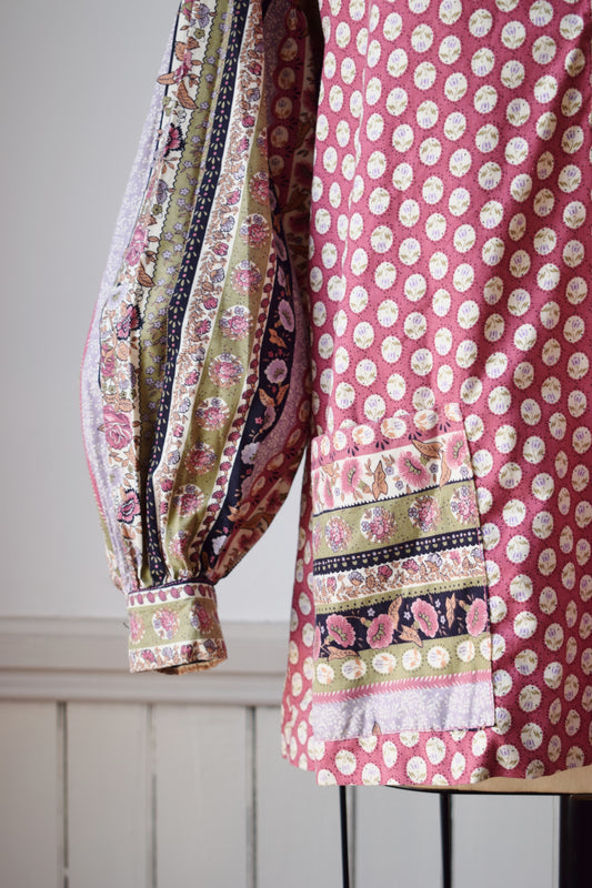 1970s Geoffrey Beene Plum Paisley Silk Dress Set | M
