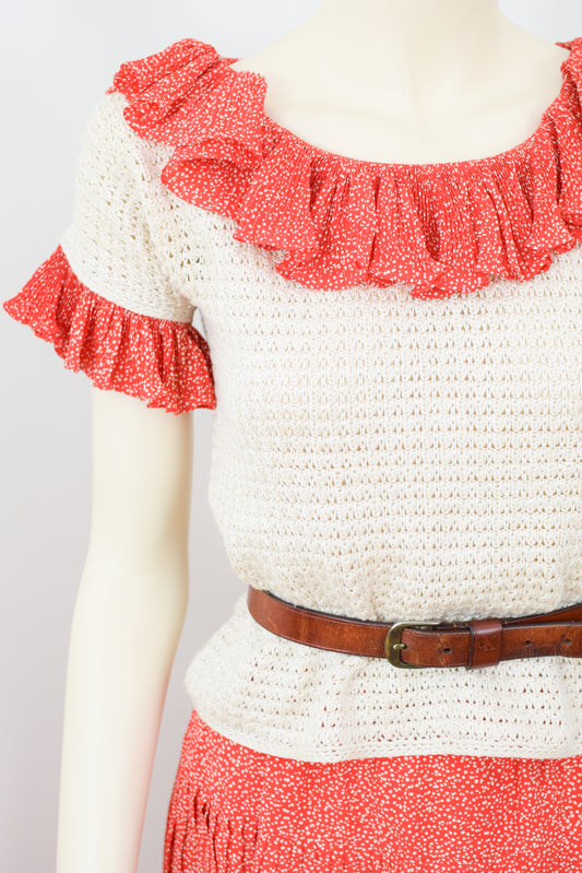 1970s Bill Blass Crochet and Pleated Dress Set | P XS