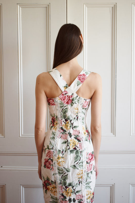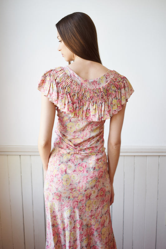 1930s Silk Rose Dress with Capelet Collar | XXS/XS