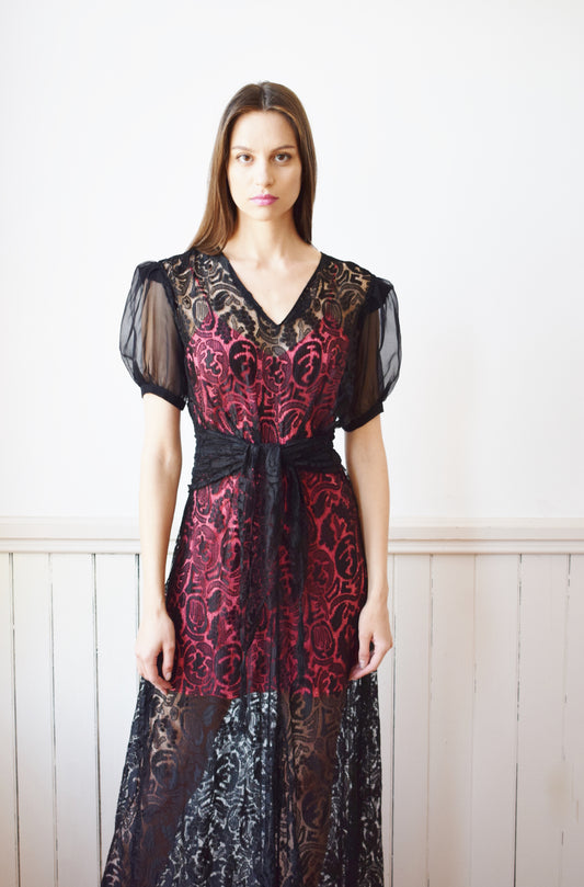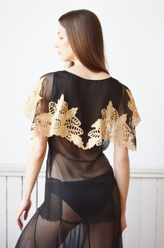 1930s Sheer Silk Gown with Lace Capelet Collar | XS/S
