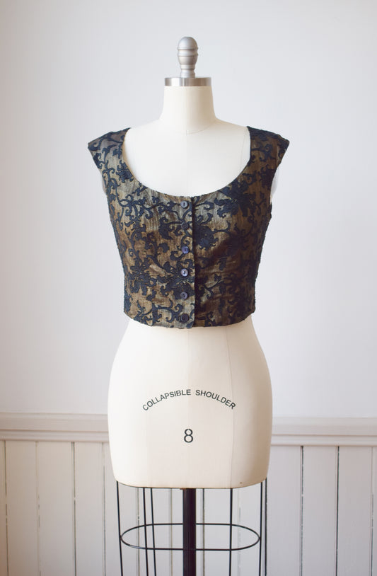 90s Burnout Silk Velvet and Gold Dress | XS/S