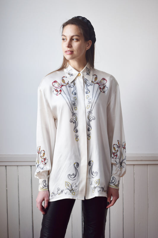 1940s Novelty Print Lantern Sleeve Blouse | M/L