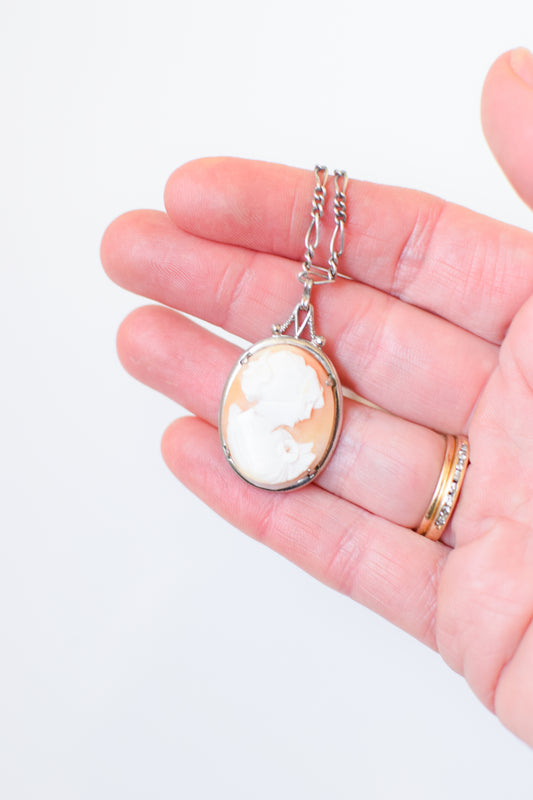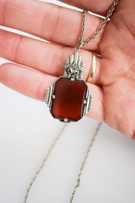 Vintage Art Deco Silver and Carnelian Pendant Necklace