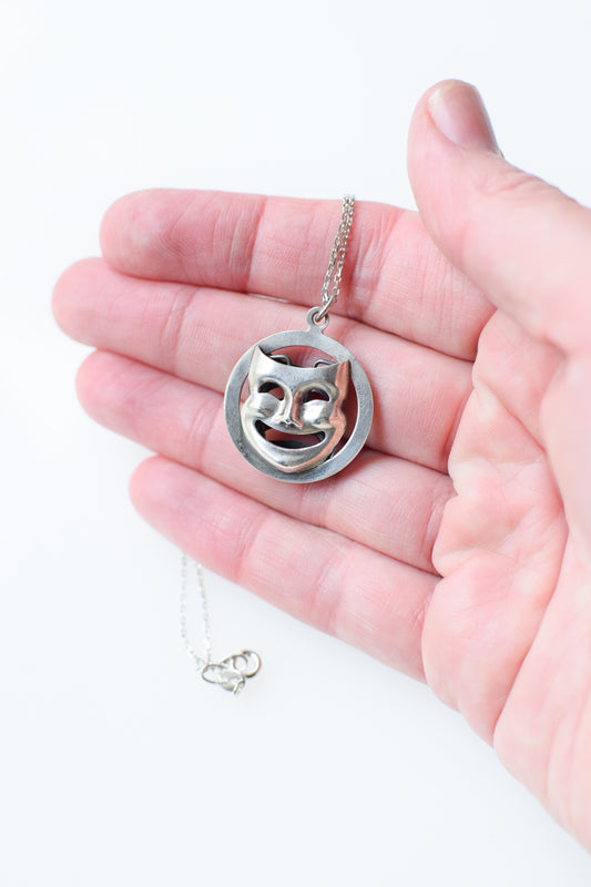 Vintage Sterling Silver Theater Masks Charm Necklace