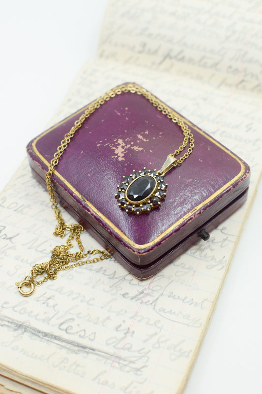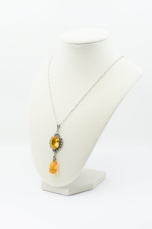 Antique Citrine Czech Glass and Sterling Pendant Necklace