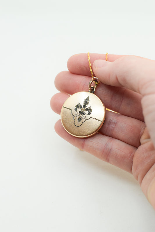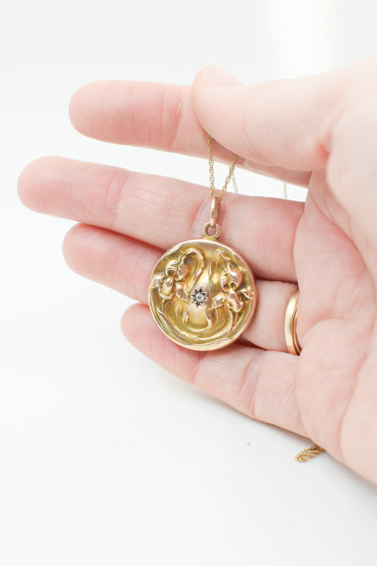 Antique 9kt Gold Art Nouveau Iris Locket with Diamond