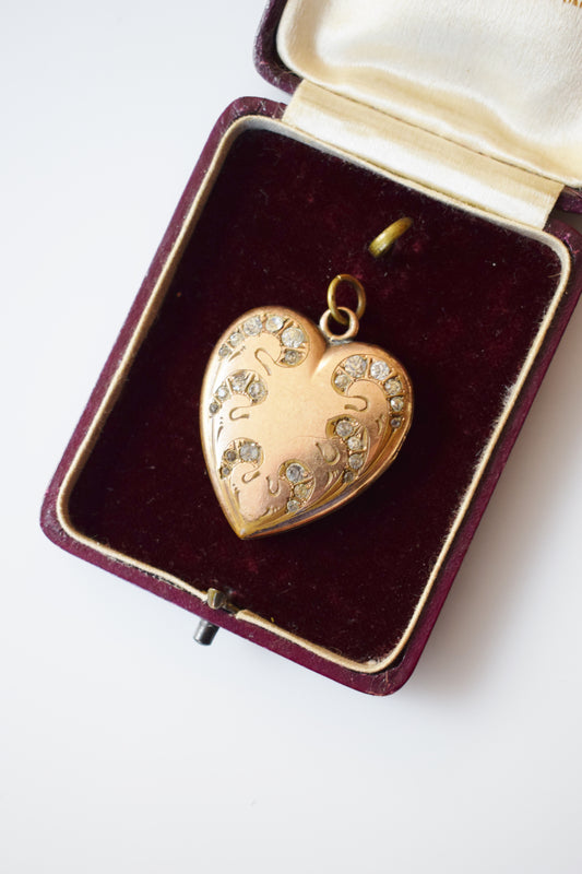 Antique Gold and Rhinestone Clovers/Clubs Locket