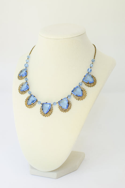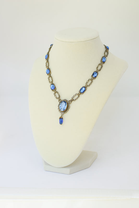 Antique Czech Glass and Brass Necklace | Blue Gems