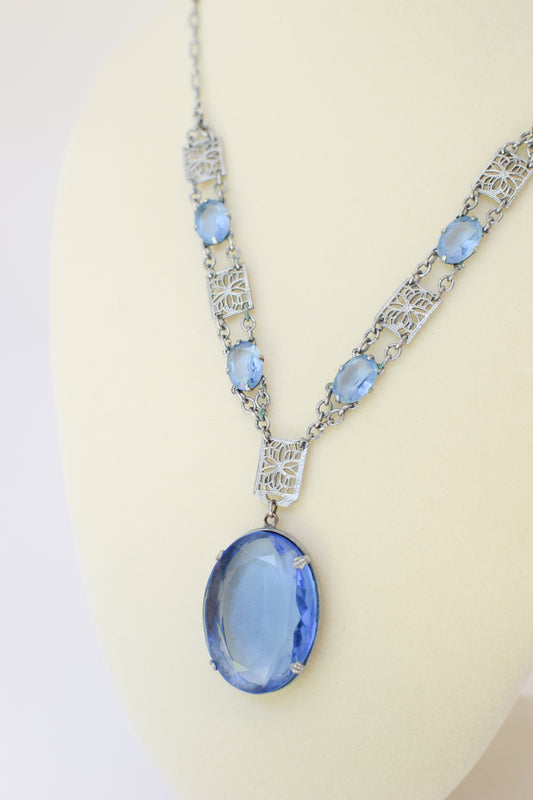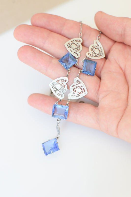 Antique Art Deco Czech Glass Necklace | Blue Drop