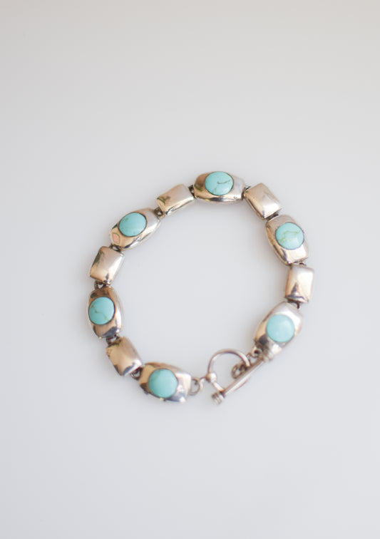 Vintage Sterling Silver and Turquoise Link Bracelet