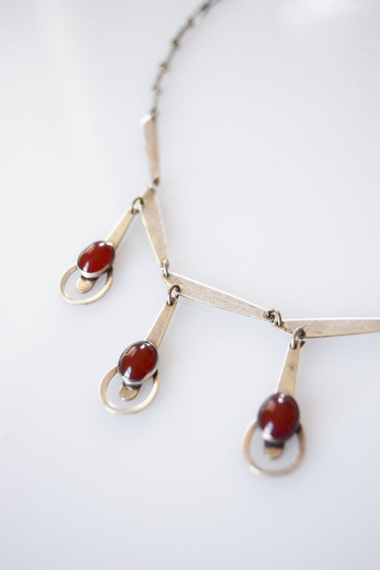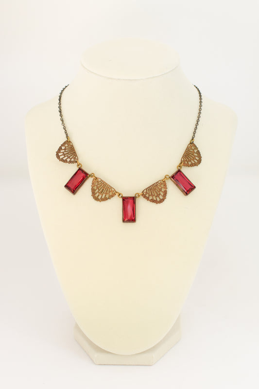 Antique Art Deco Czech Glass and Rhodium Plated Necklace