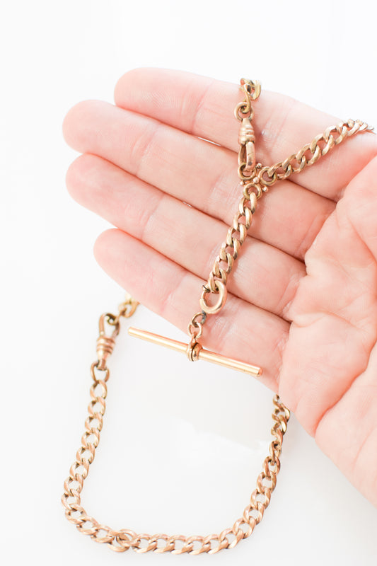 Antique 10kt Gold-filled Fob Chain Necklace with T-Bar | 16.5"