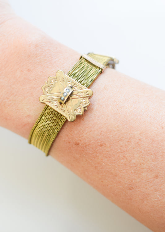 Vintage 1940s Sweetheart Bracelet with Magenta Gem