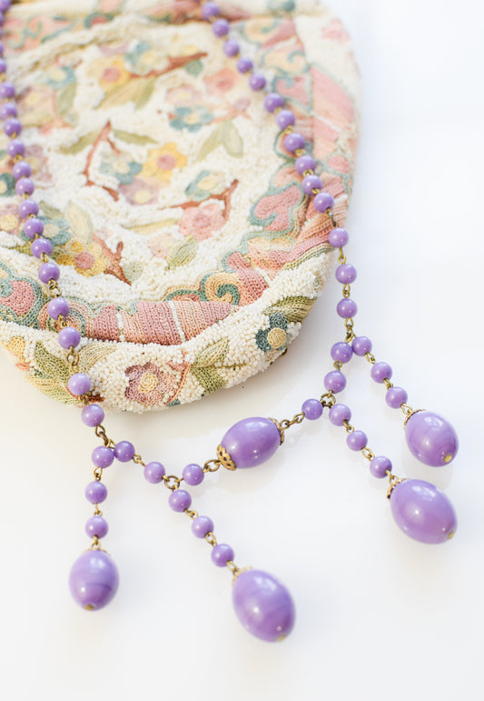 Vintage Lavender Czech Glass + Brass Deco Necklace
