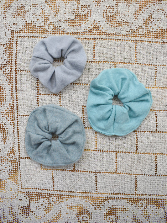 For M Upcycled Cashmere Scrunchies | Soft Teal and Ice Blue