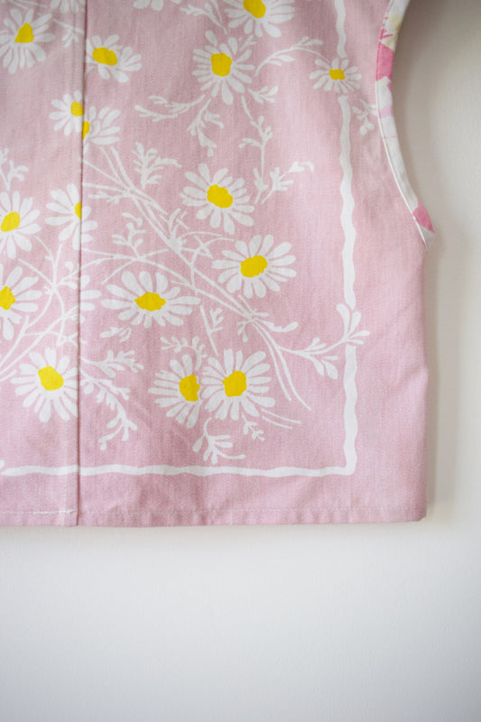 Vintage Pink Daisy Tablecloth Top | S