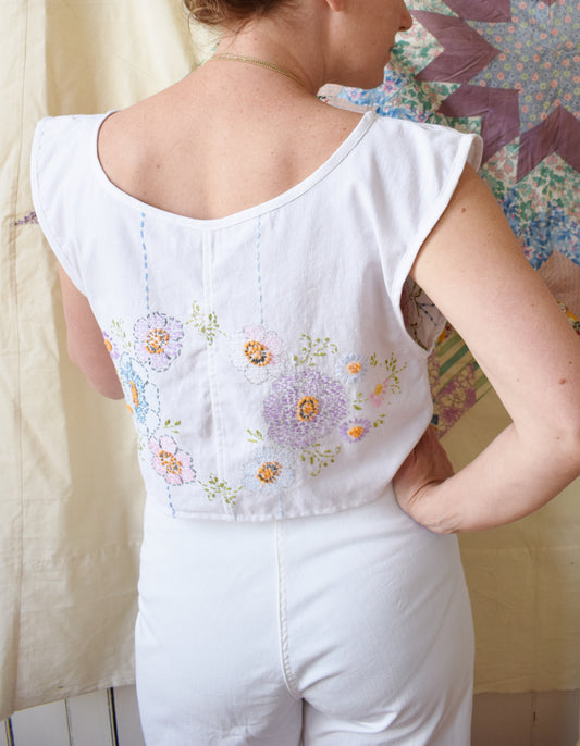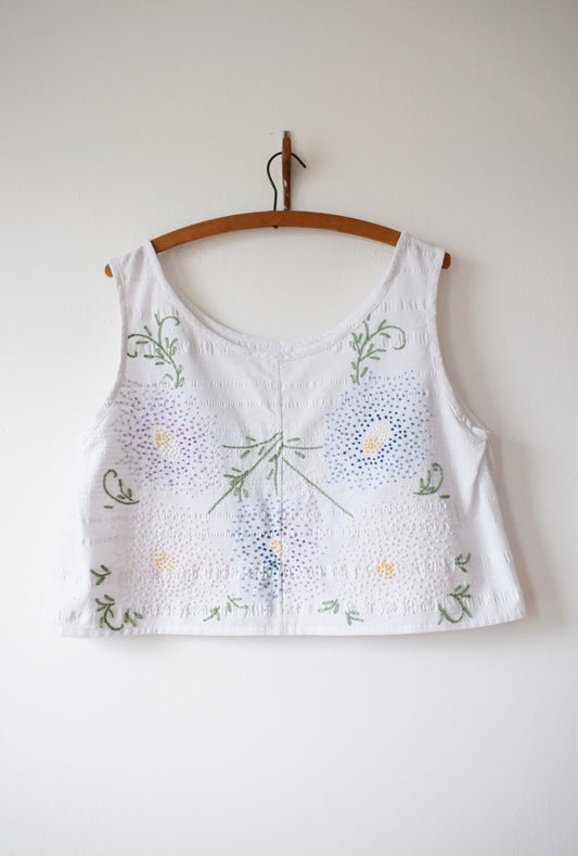 Vintage Embroidered Cotton Top | Pixel Floral | M