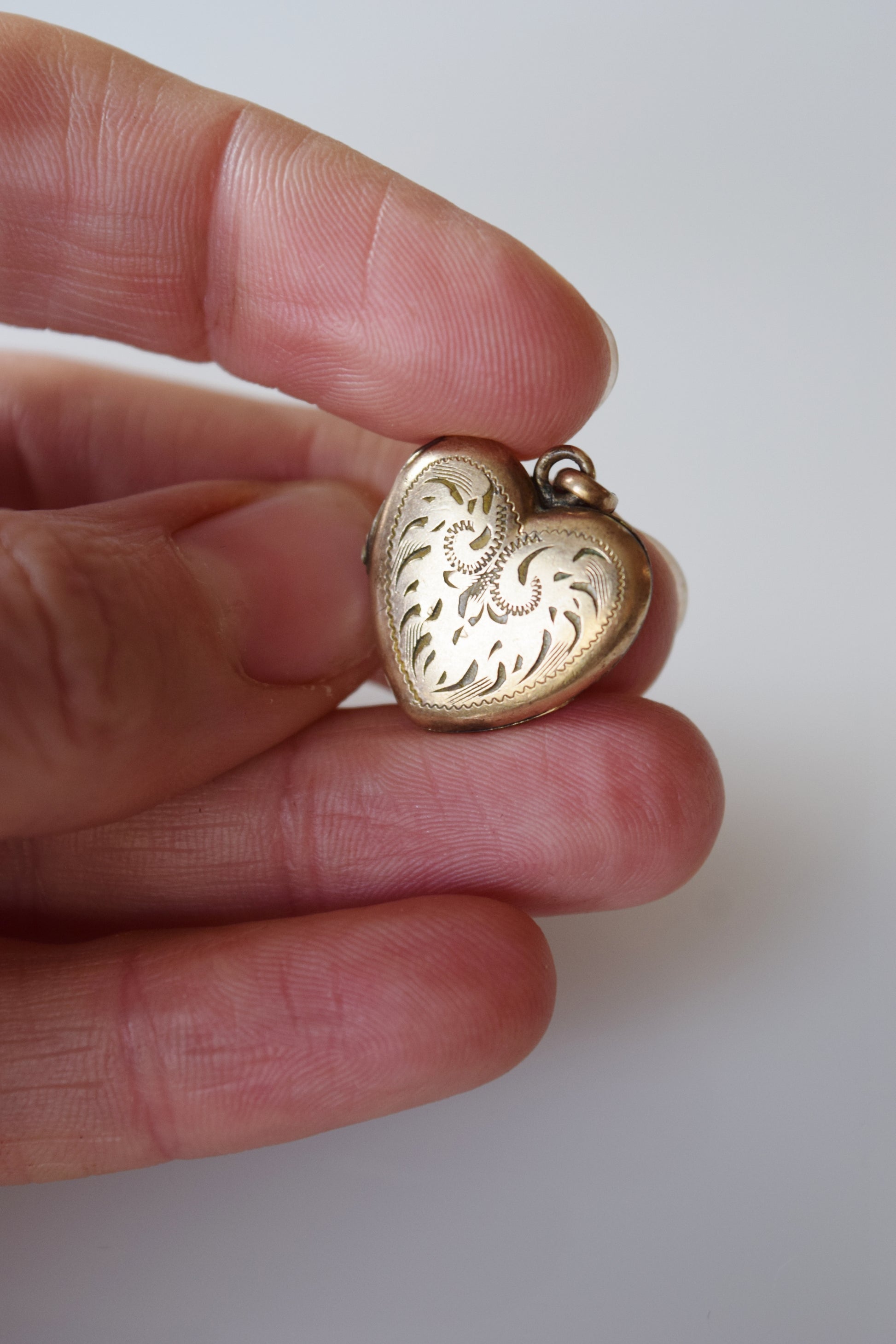 Antique Gold Fill Heart Locket | Scrolled Engraving