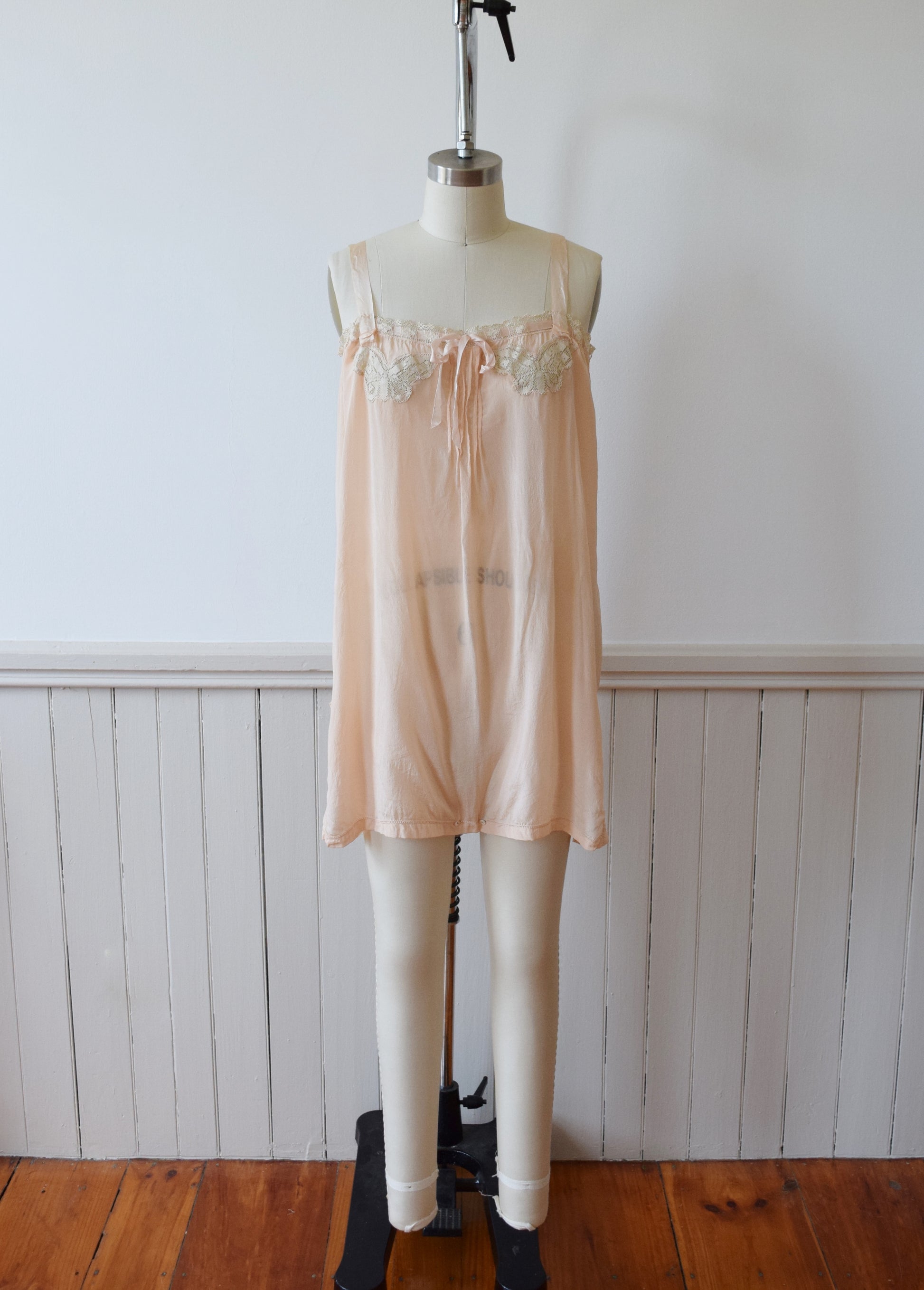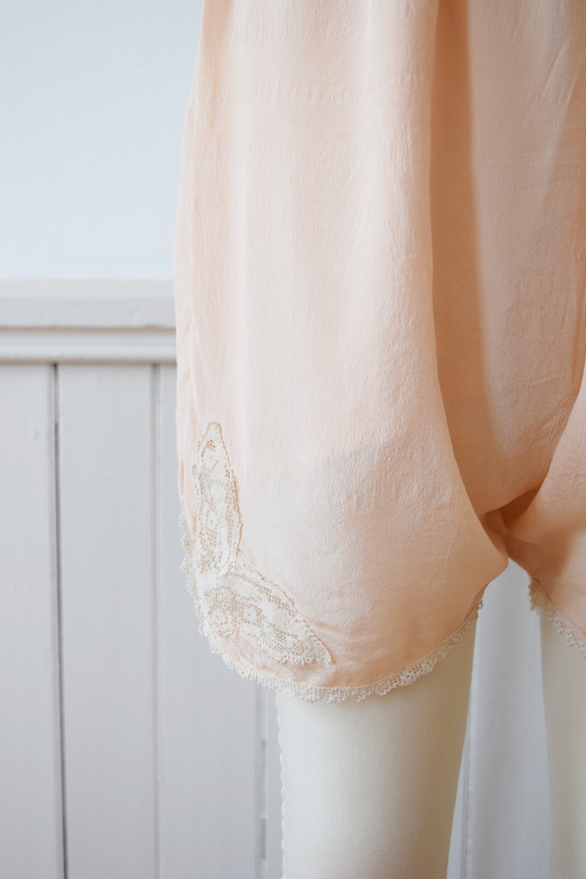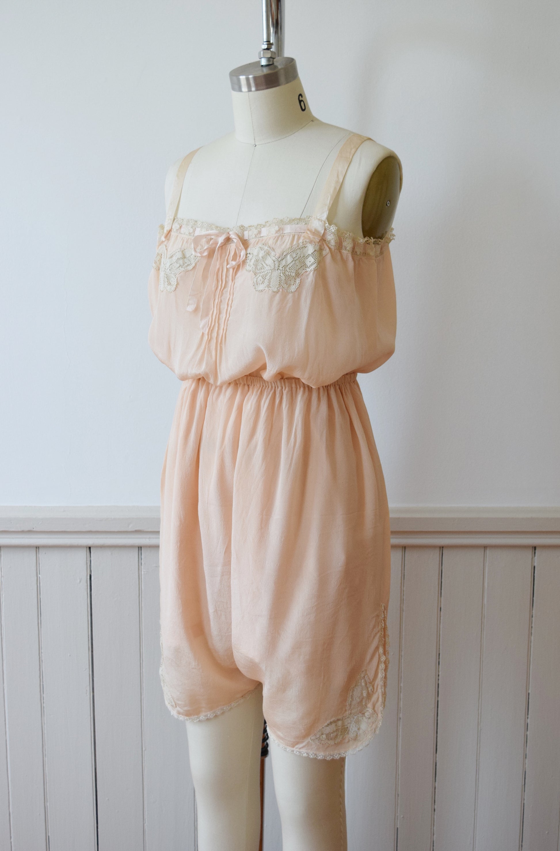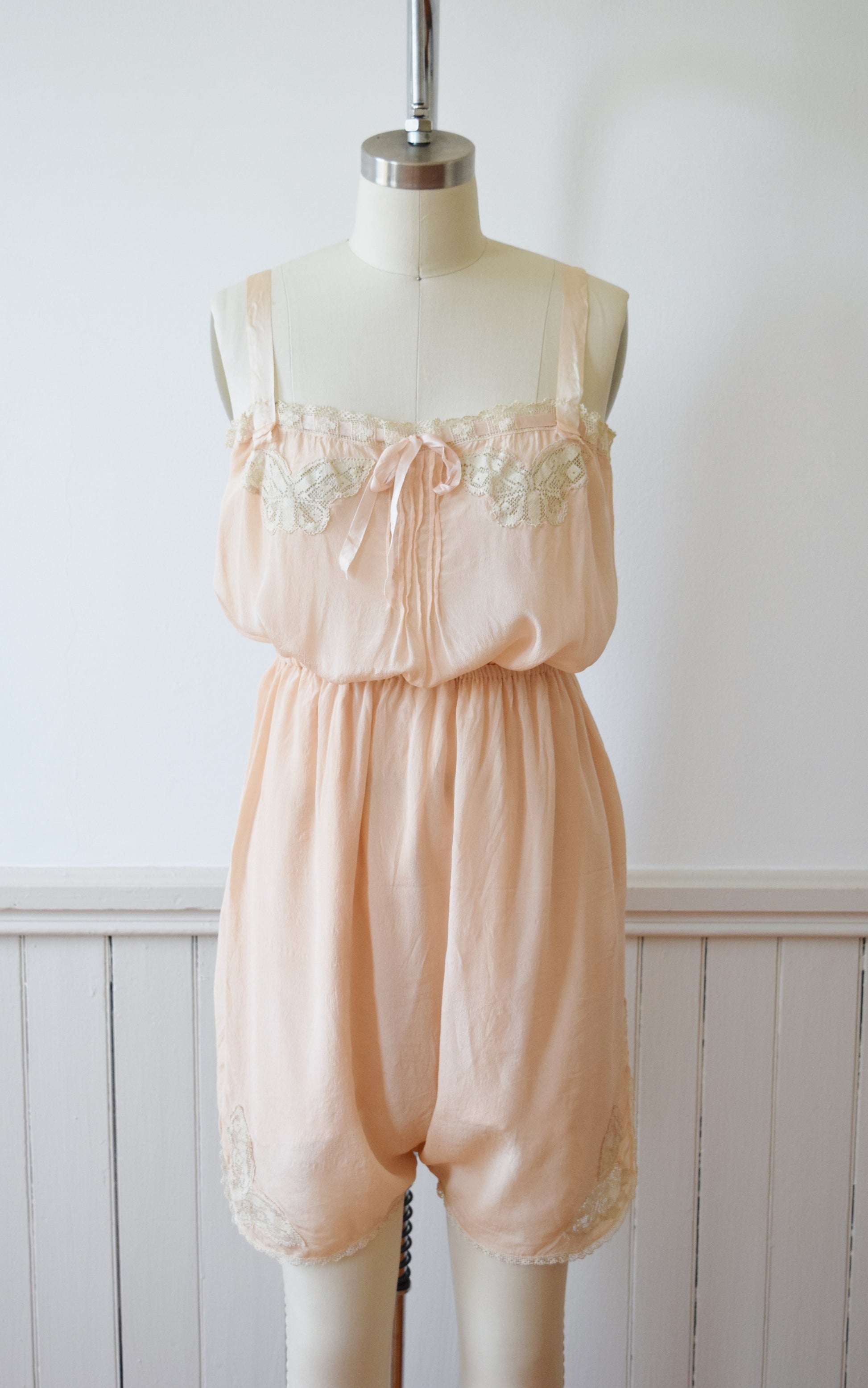 1920s Blush Silk Step-in and Tap Pants Set with Crochet Butterfly Insets