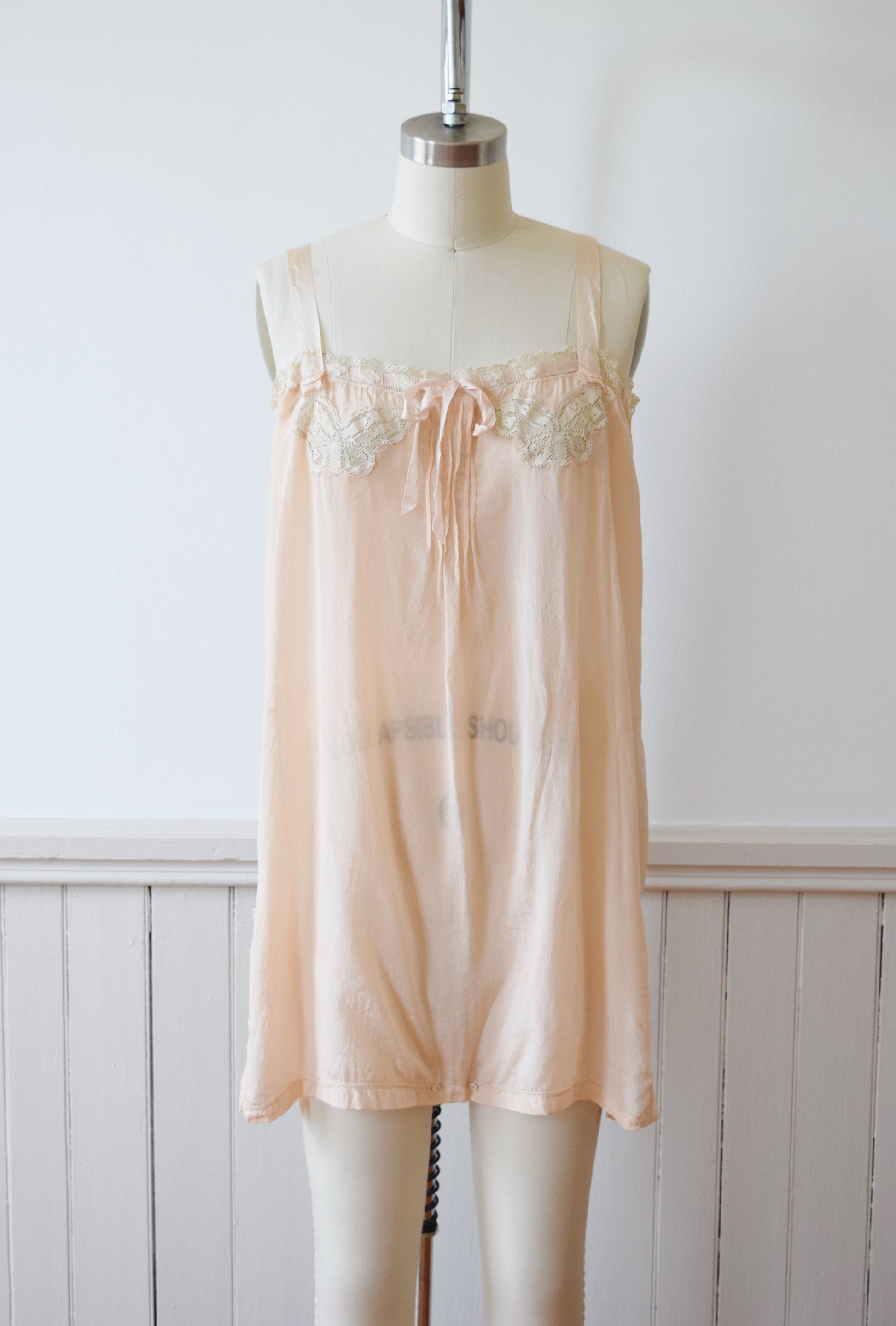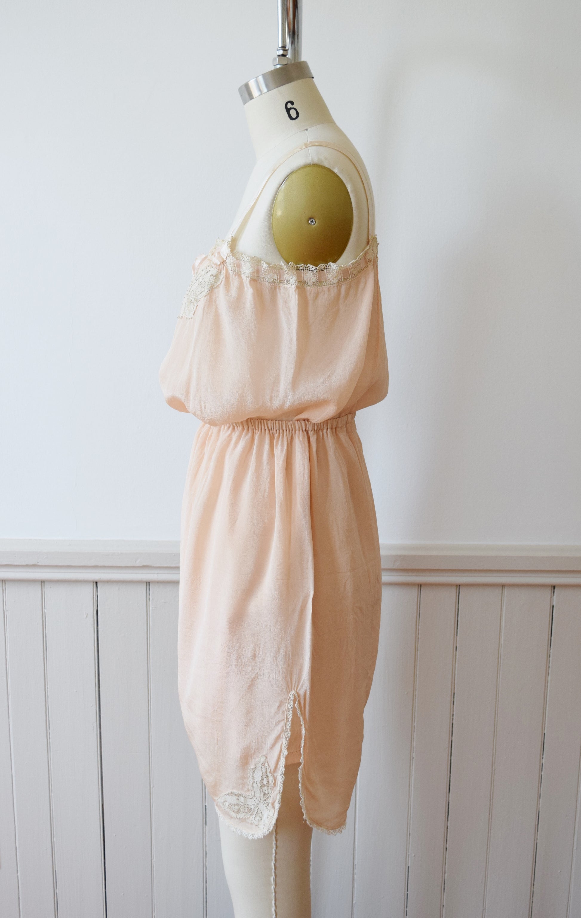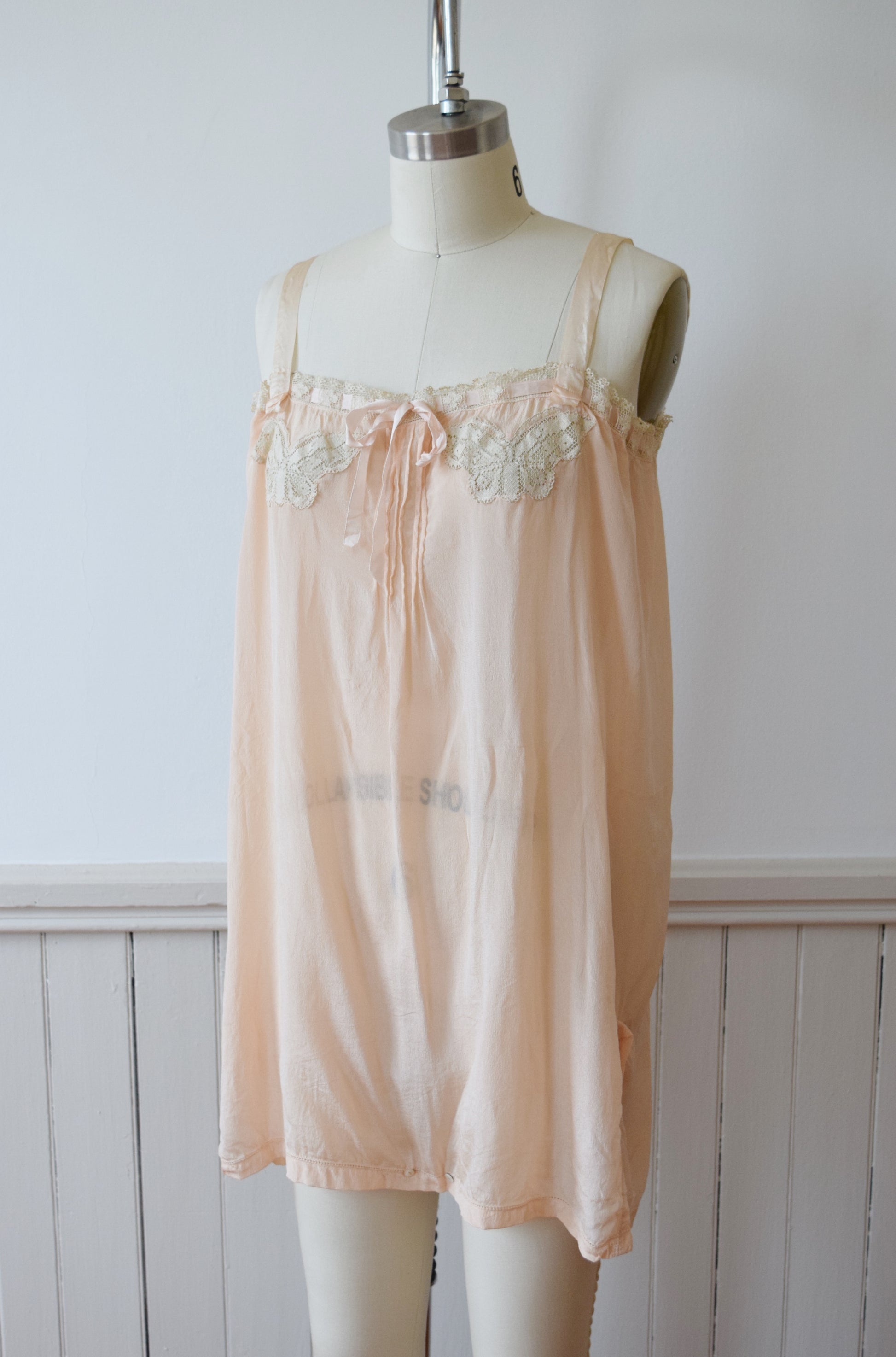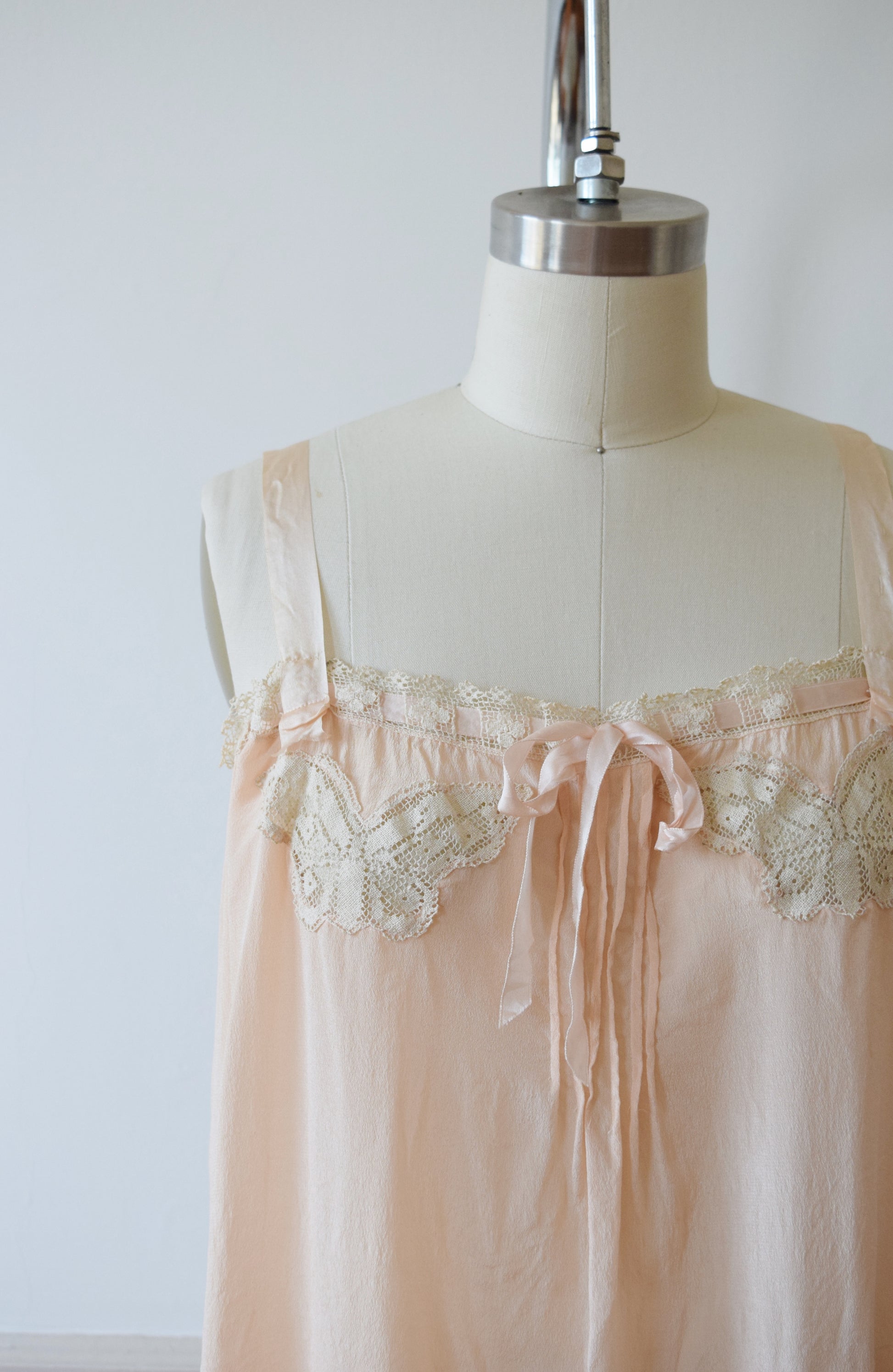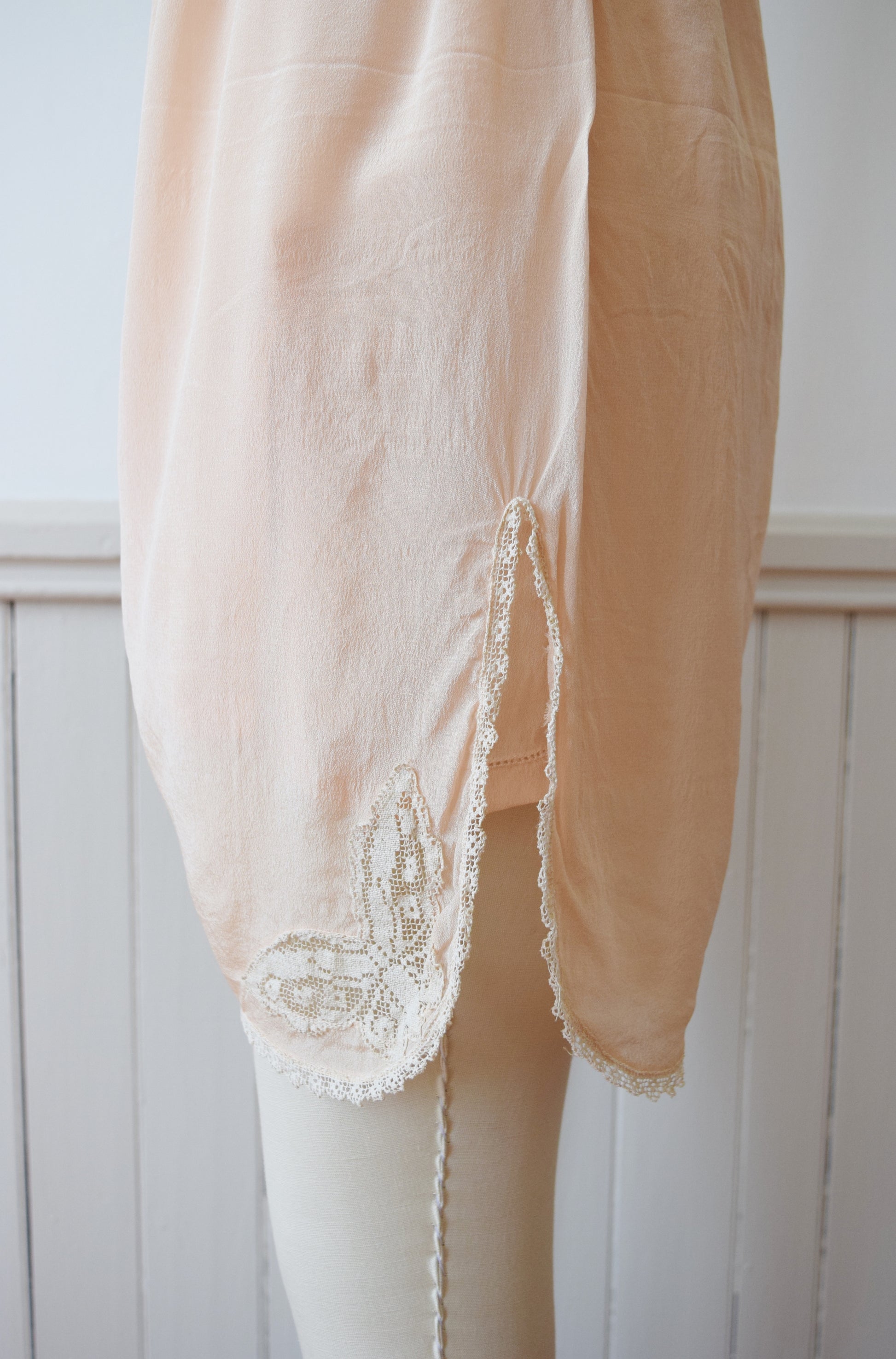 1920s Blush Silk Step-in and Tap Pants Set with Crochet Butterfly Insets