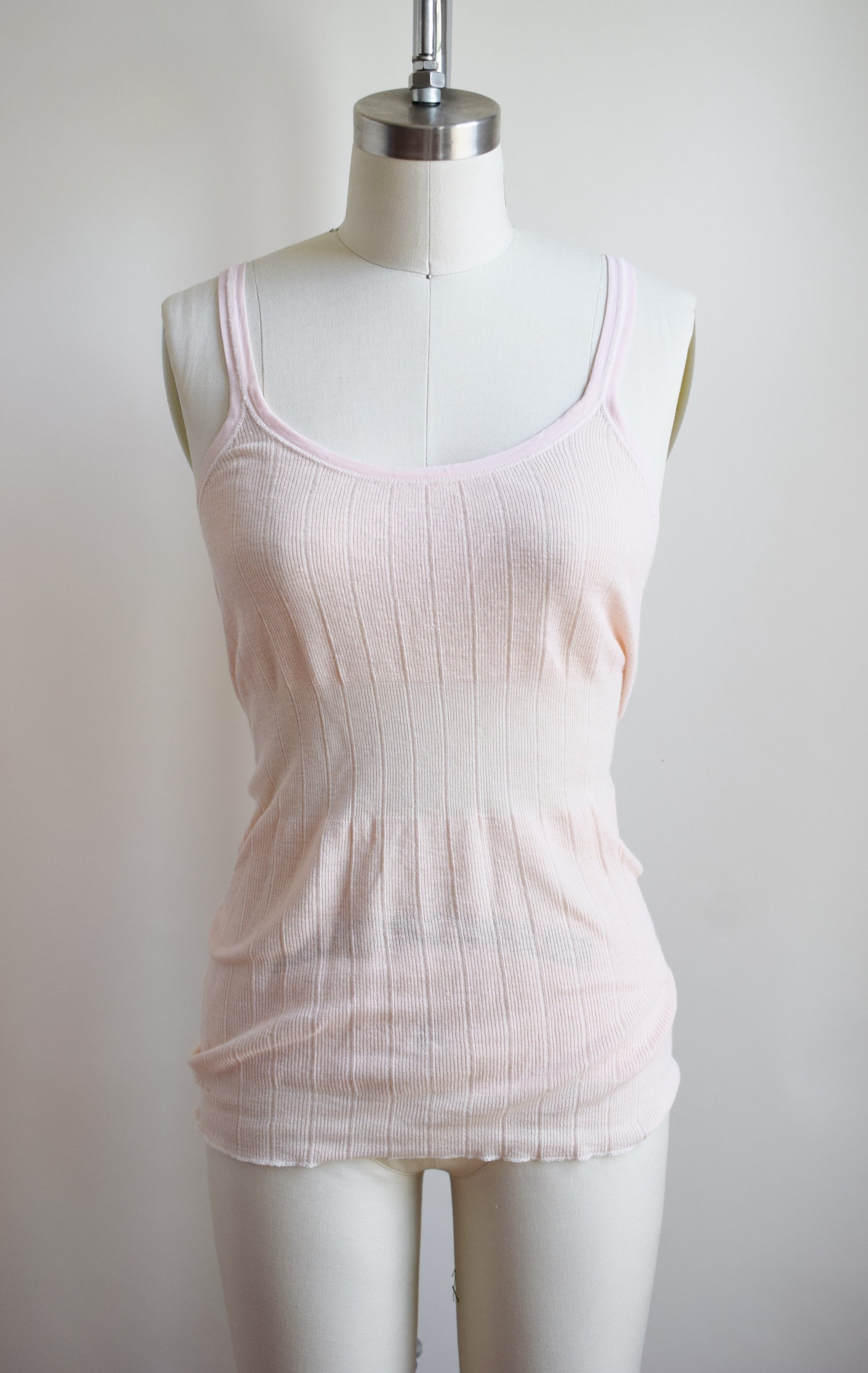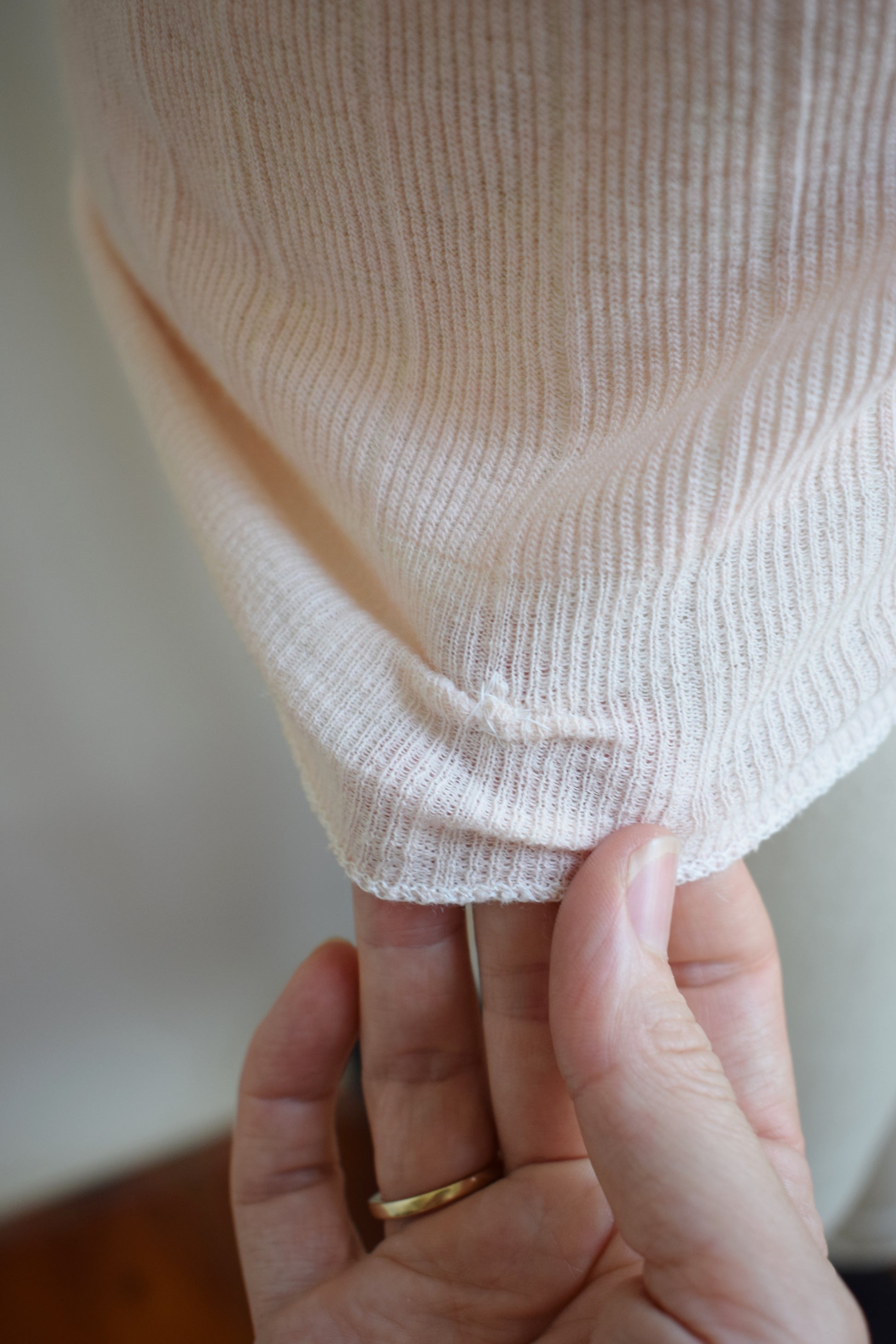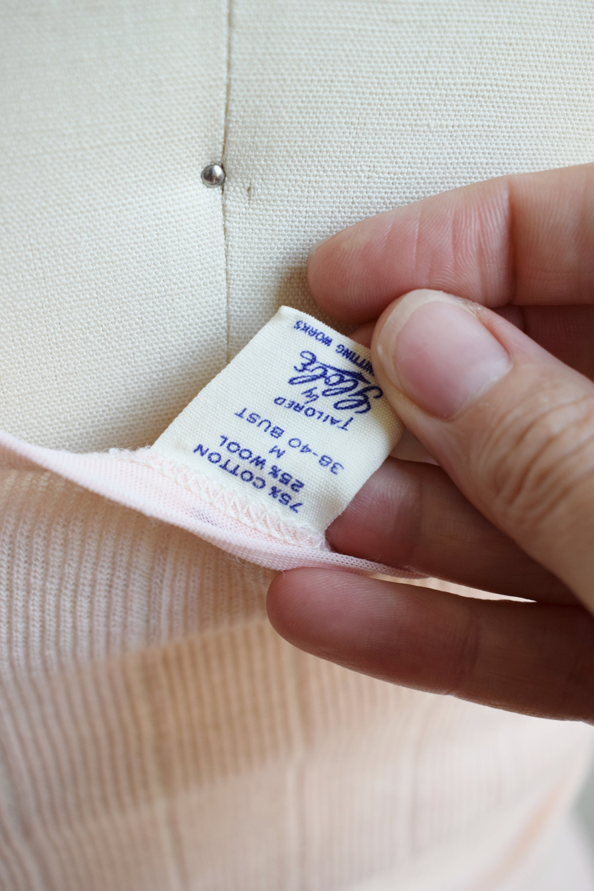 pale pink rib knit, long line. 75% cotton, 25% wool