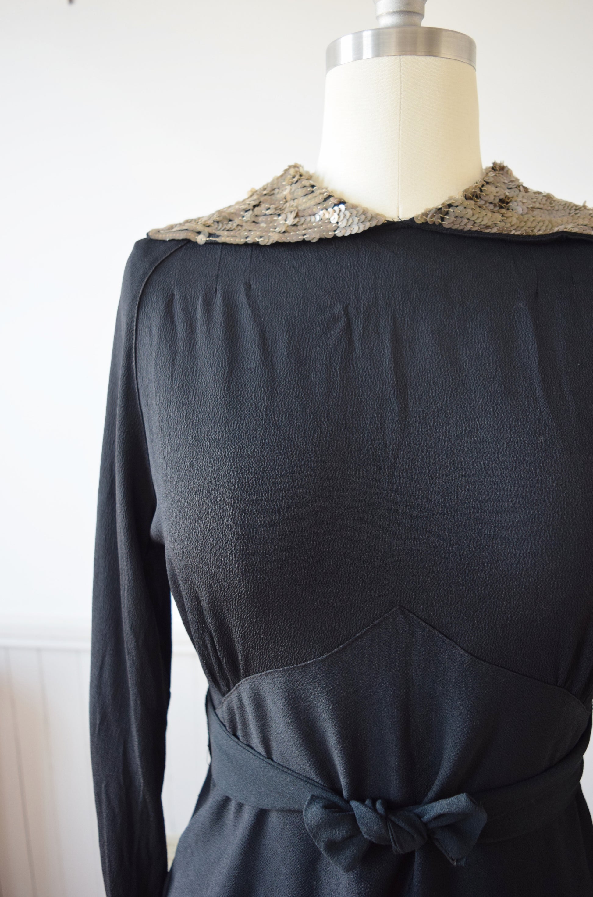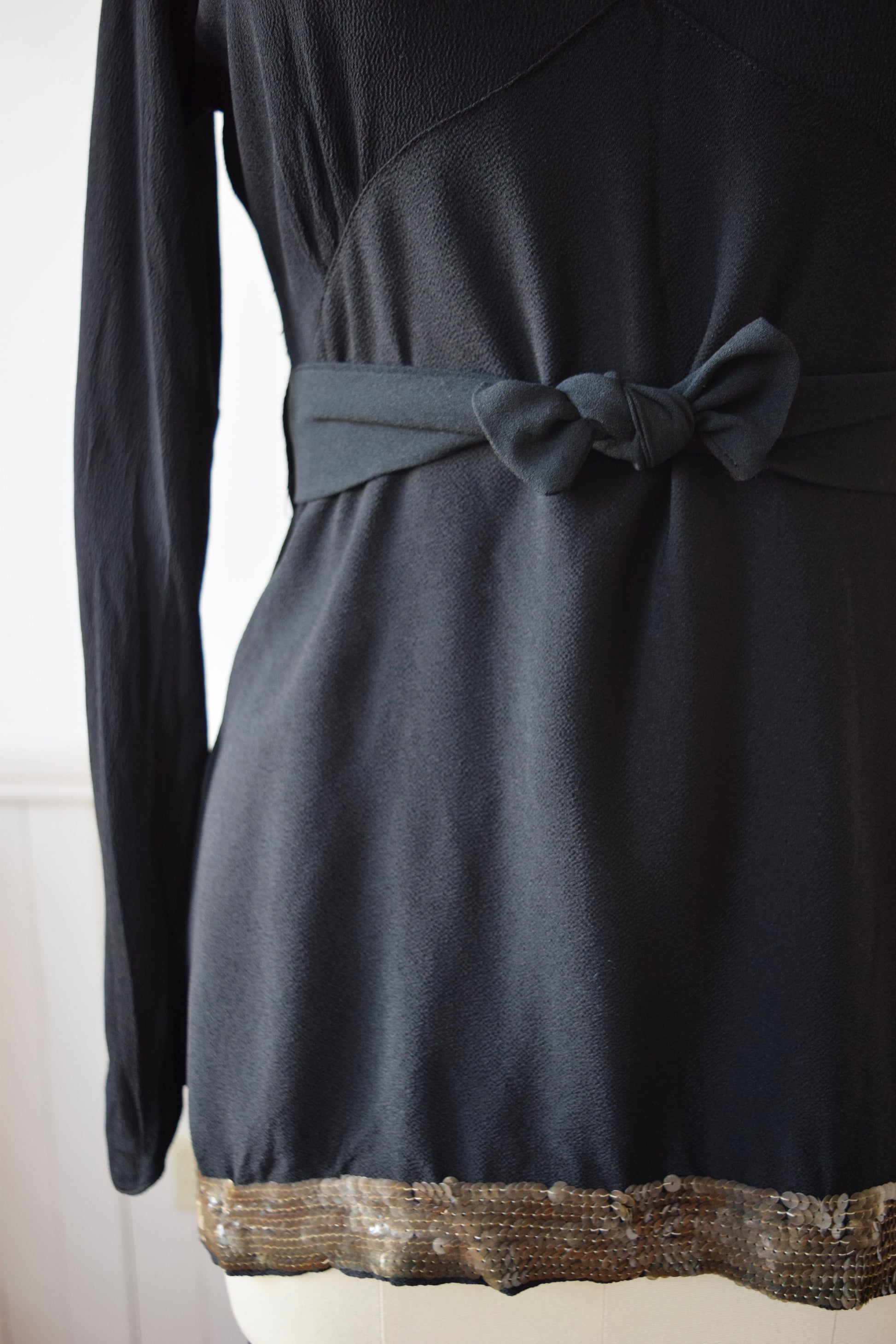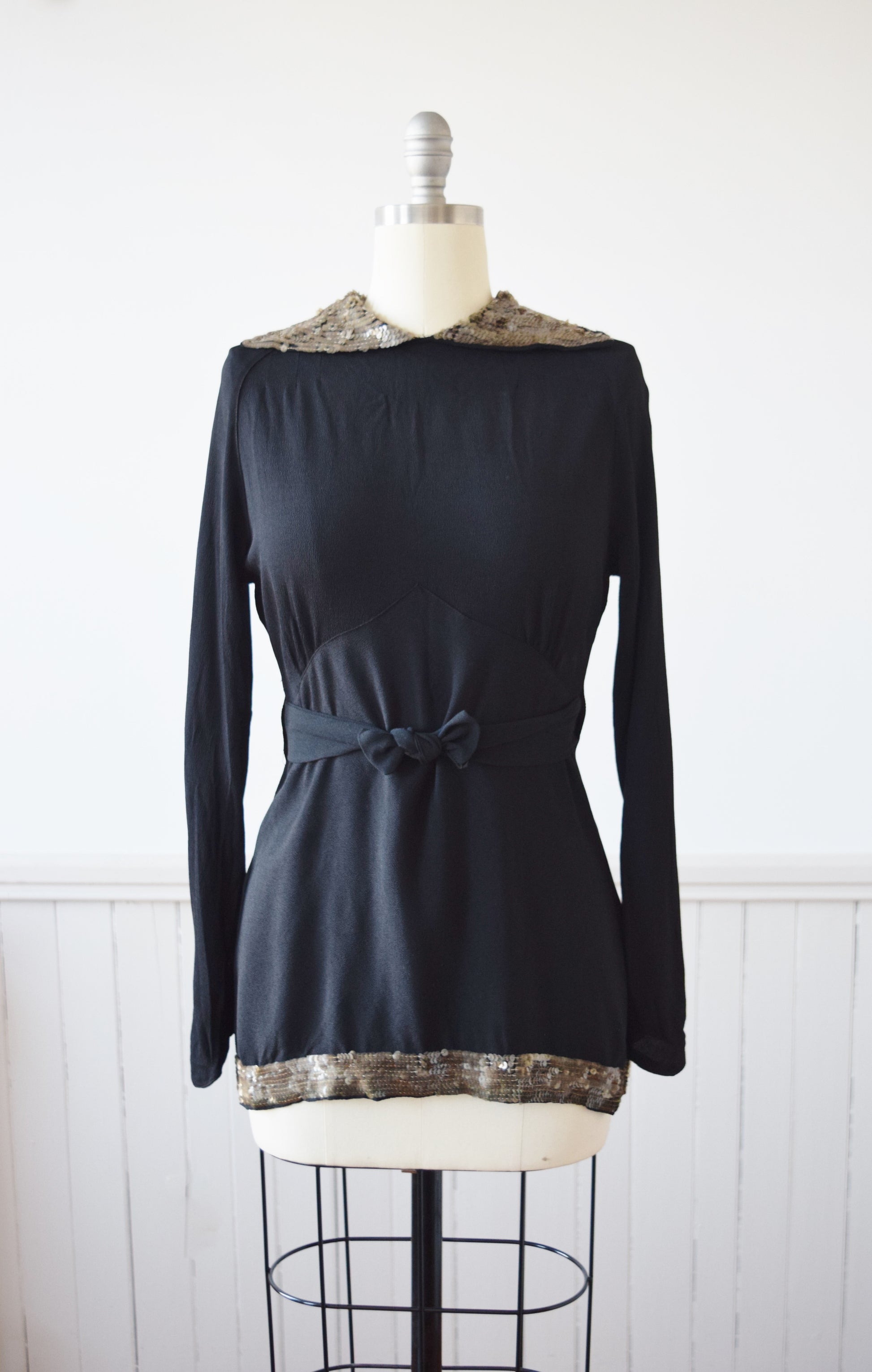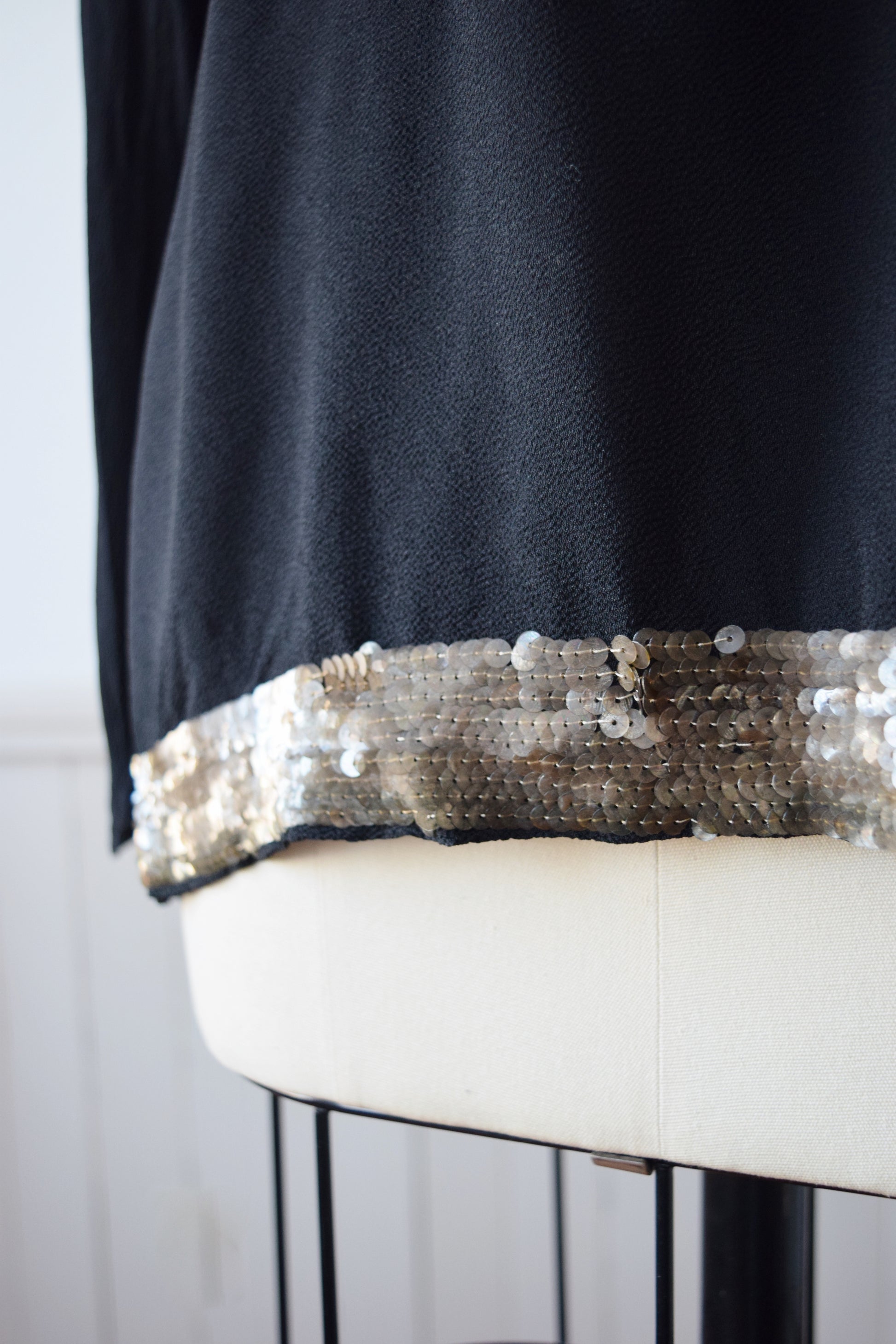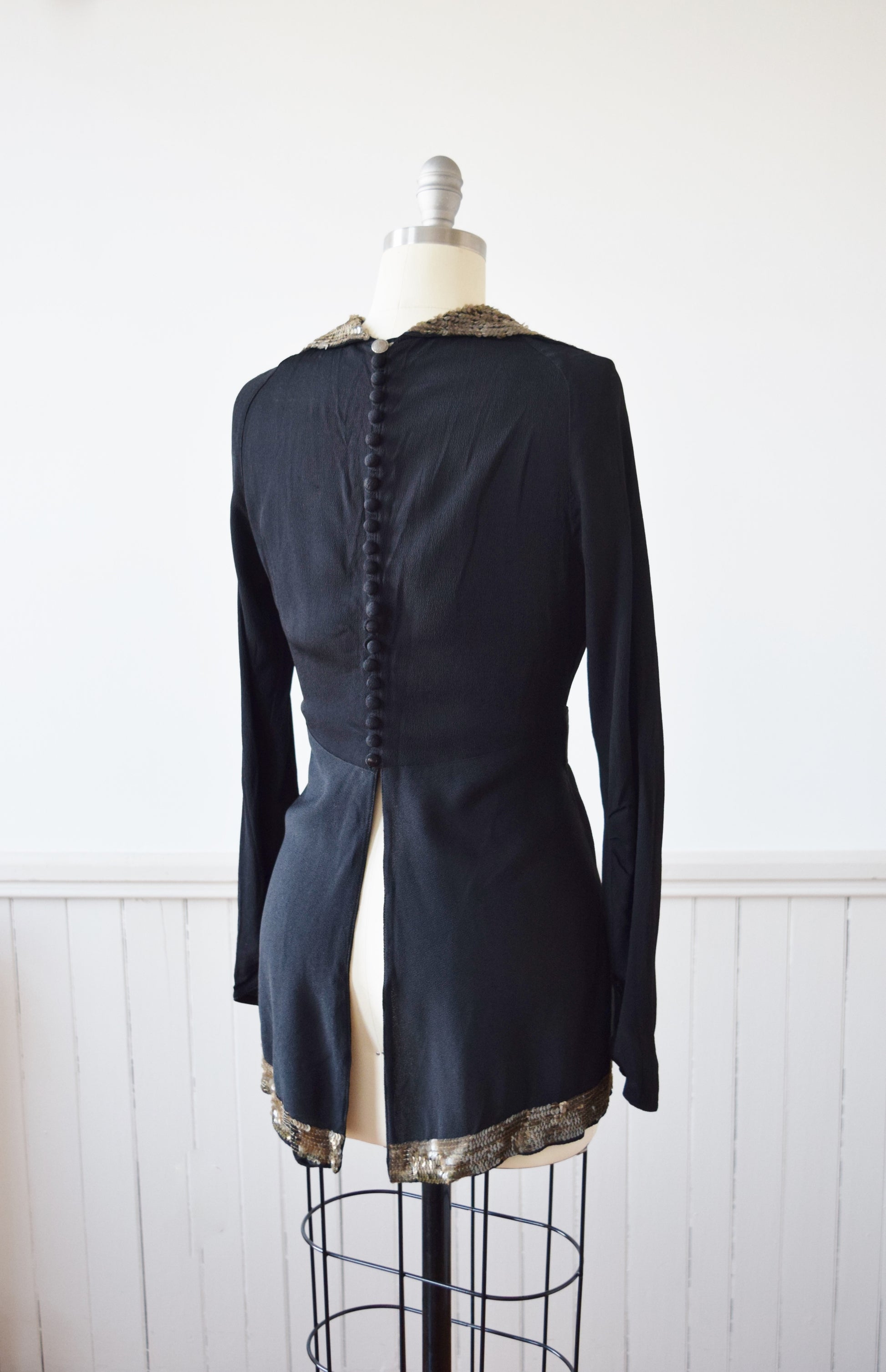 1930s Sequin Trimmed Rayon Blouse | S/M