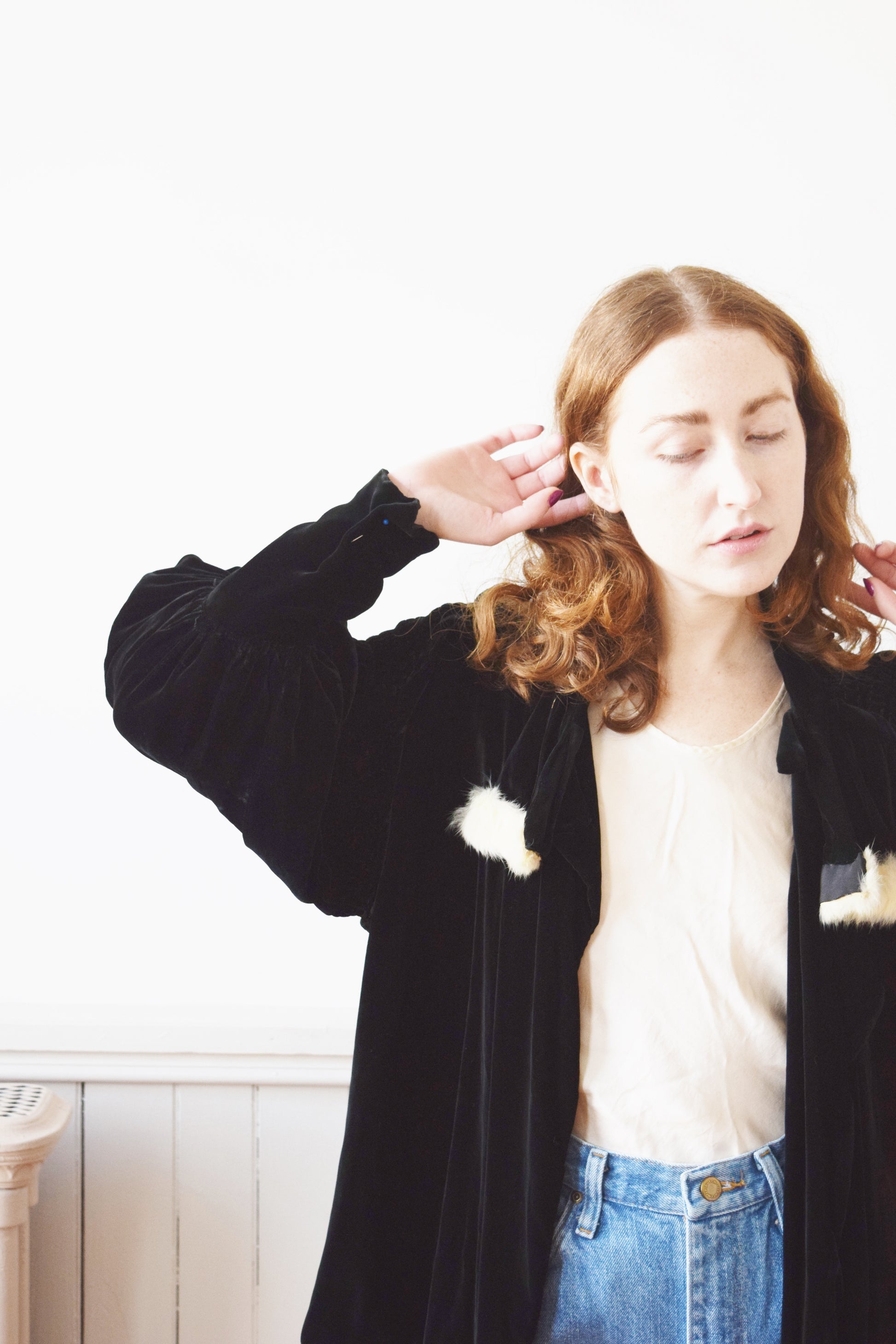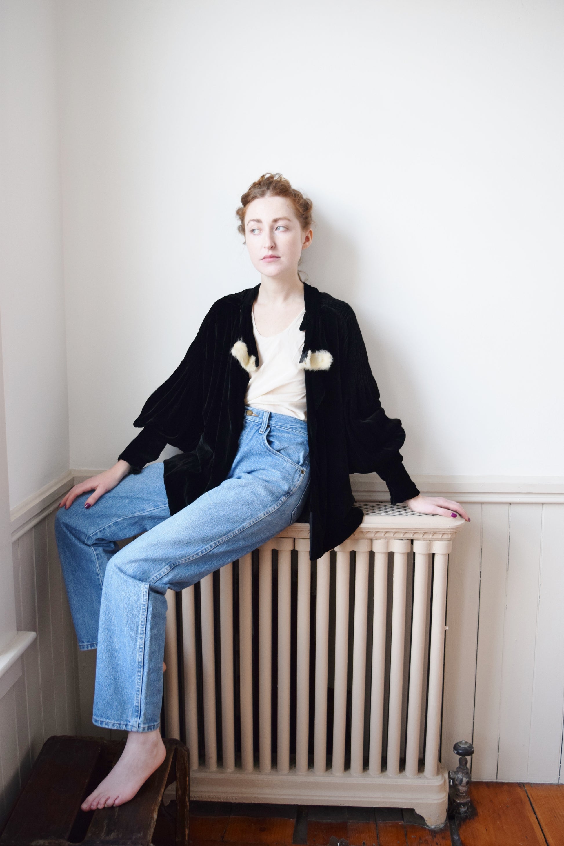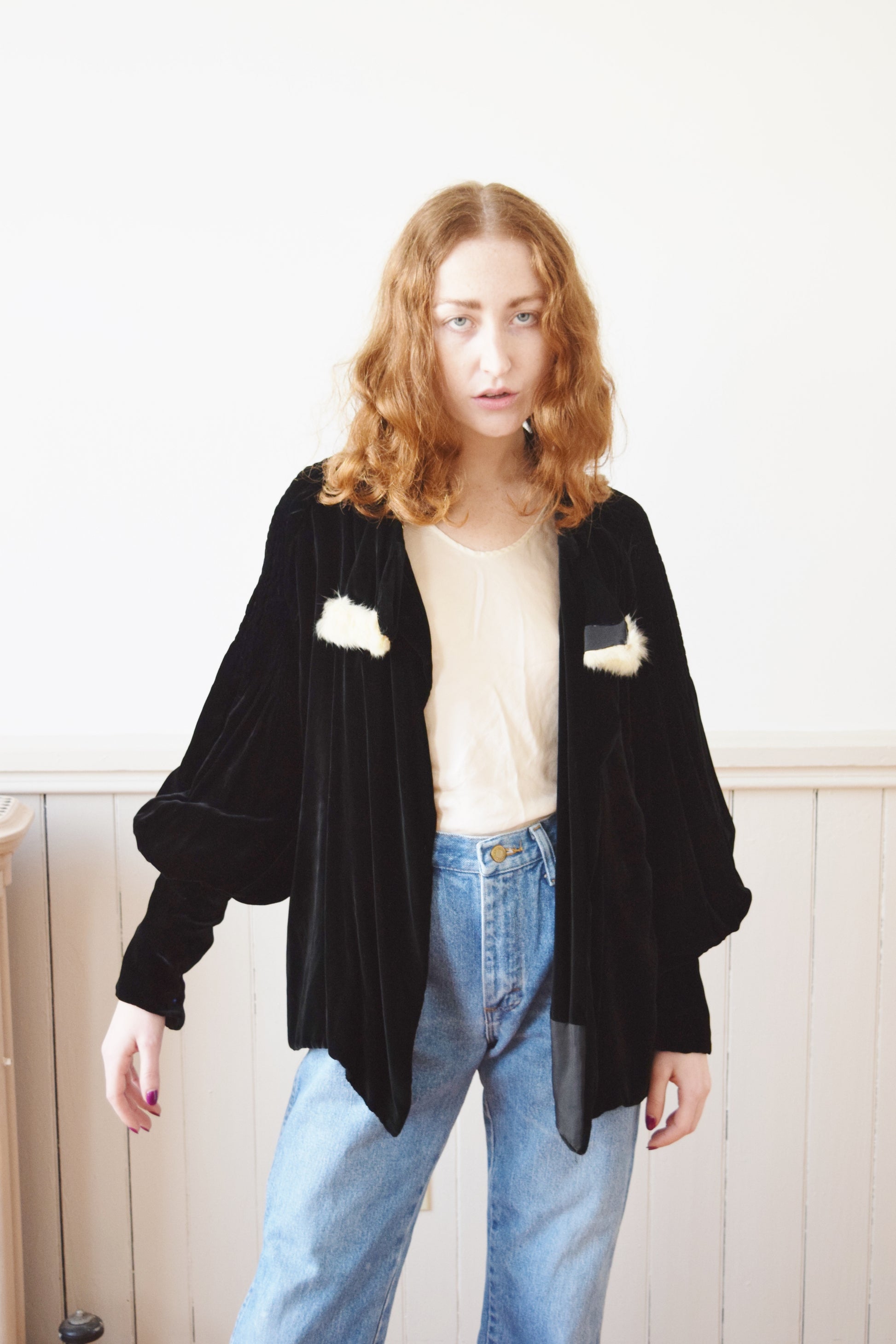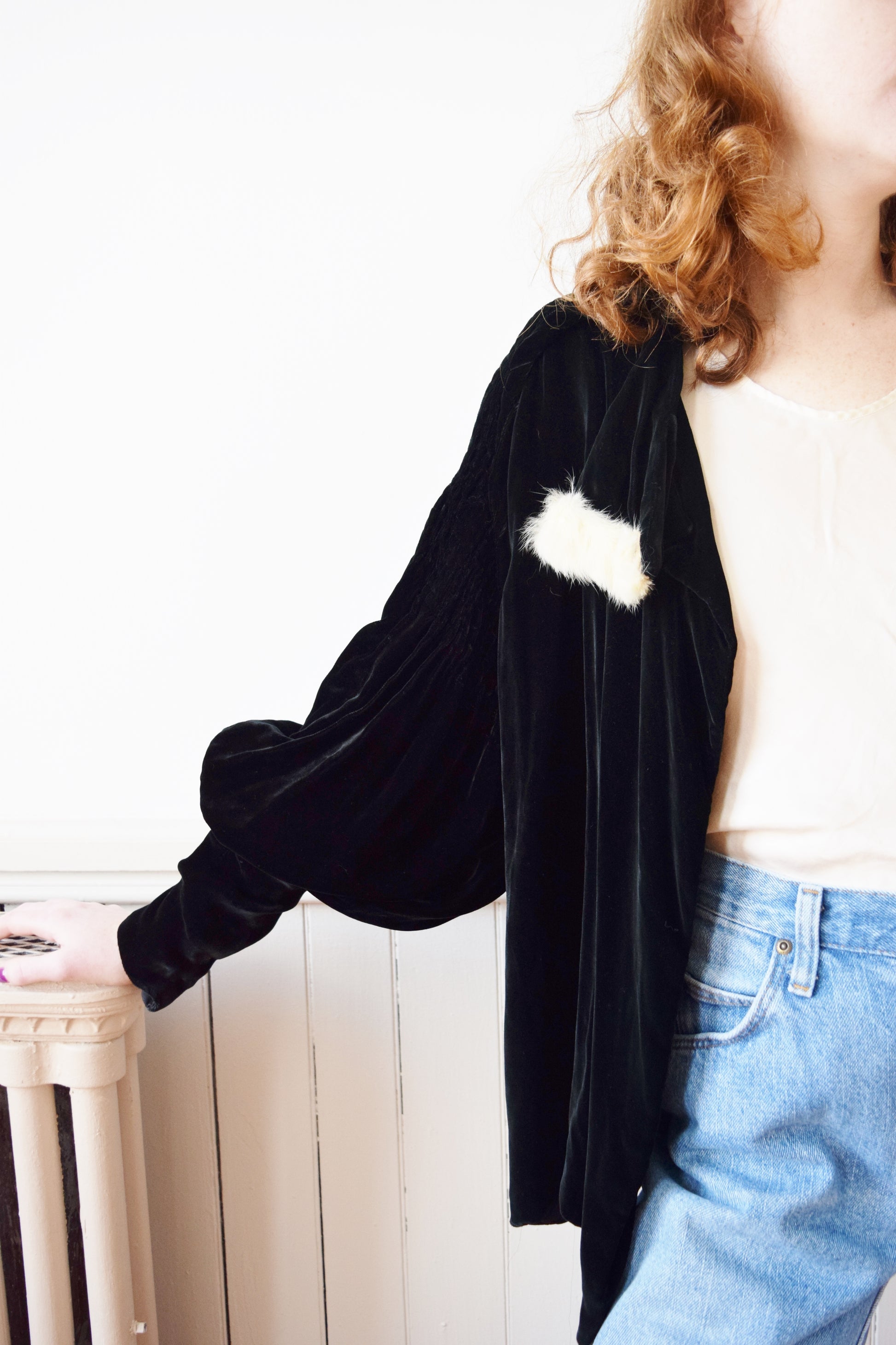 1930s Silk Velvet Jacket with Bishop Sleeves | OS