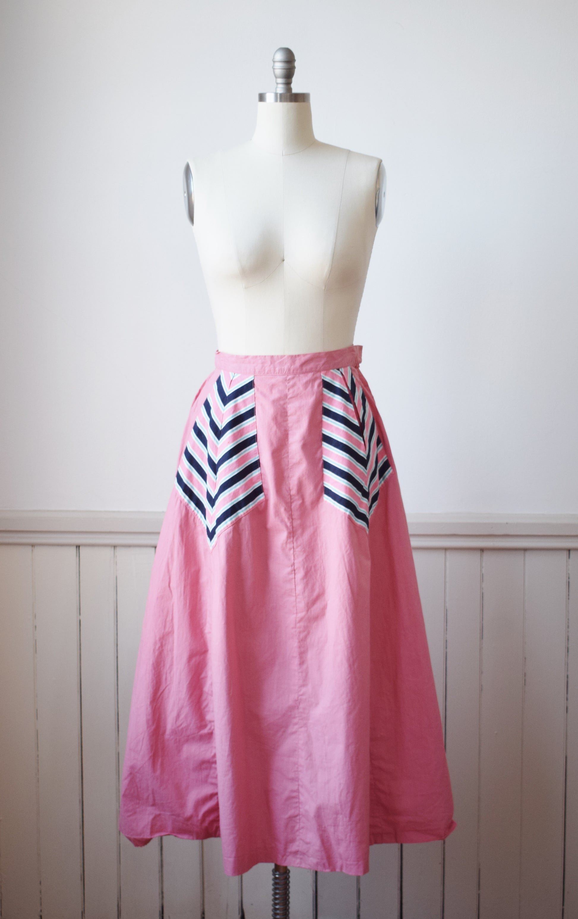 1940s Pink Cotton Skirt | S/M | wounded bird