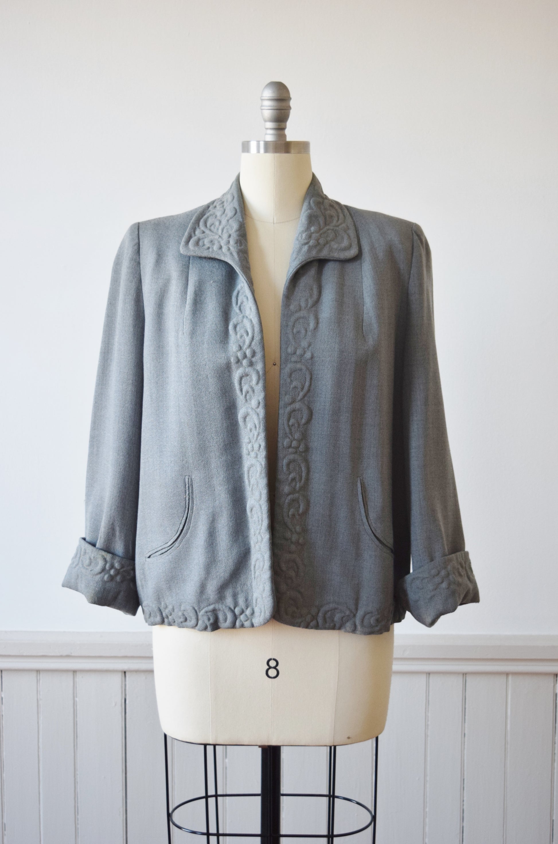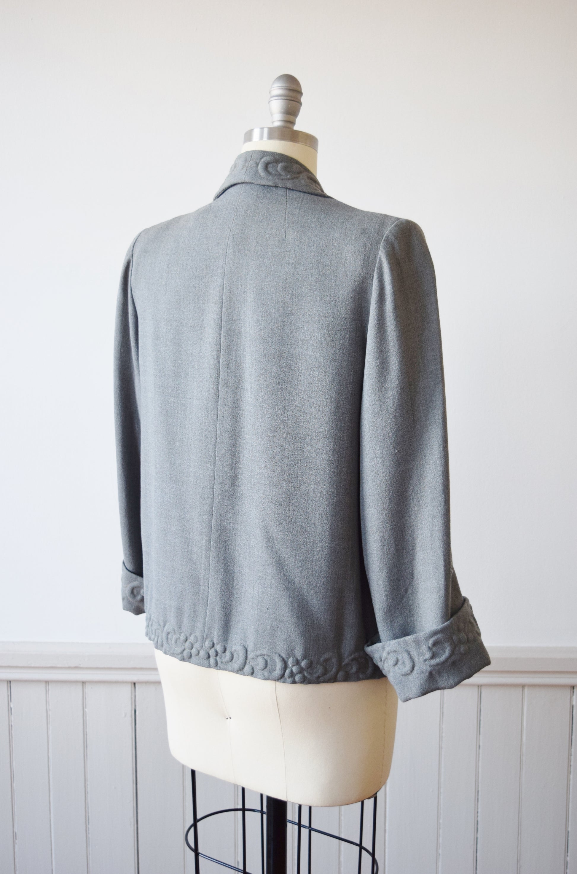 1940s Trapunto Grey Wool Swing Jacket | M