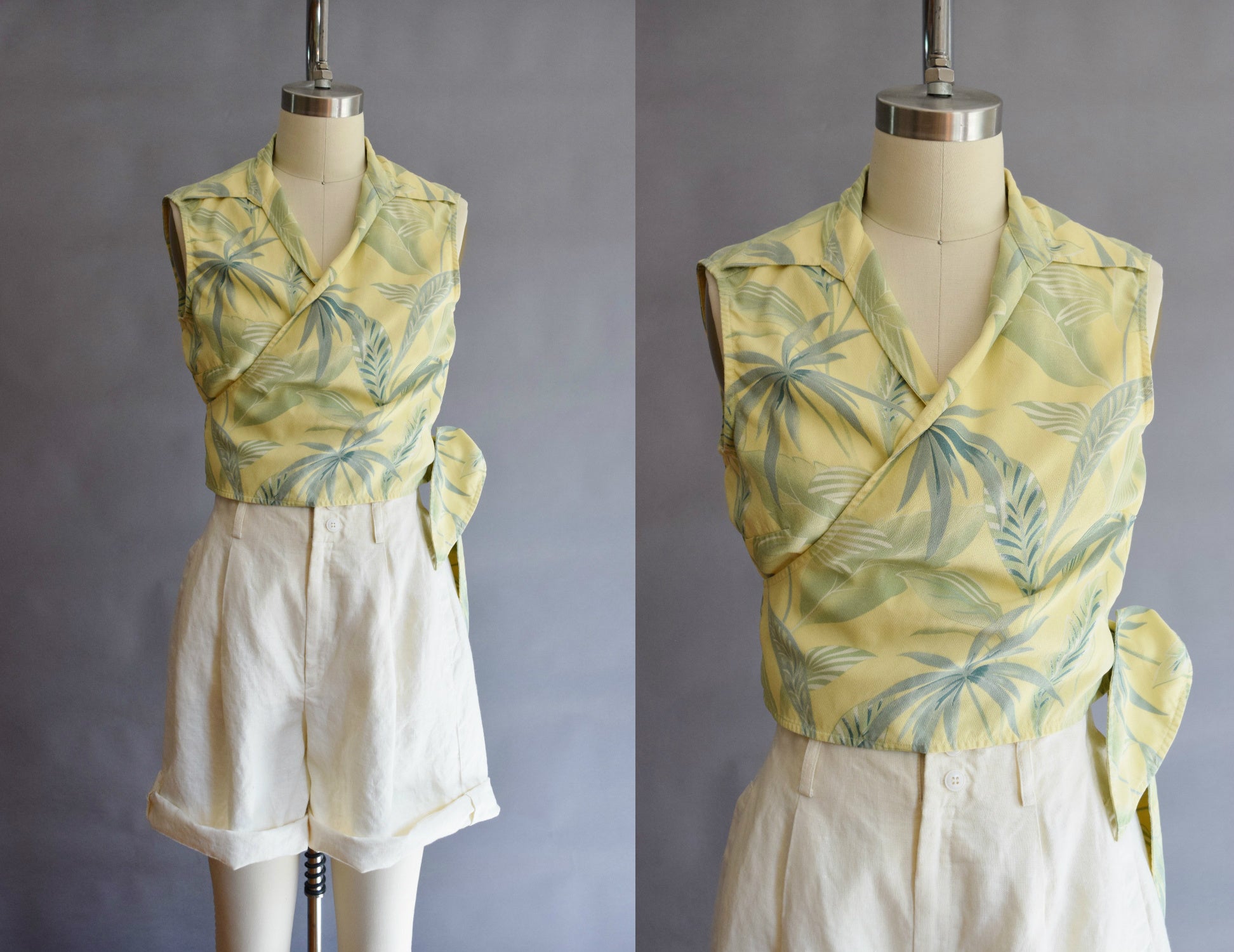 1950s-Style Hawaiian Print Silk Wrap Blouse