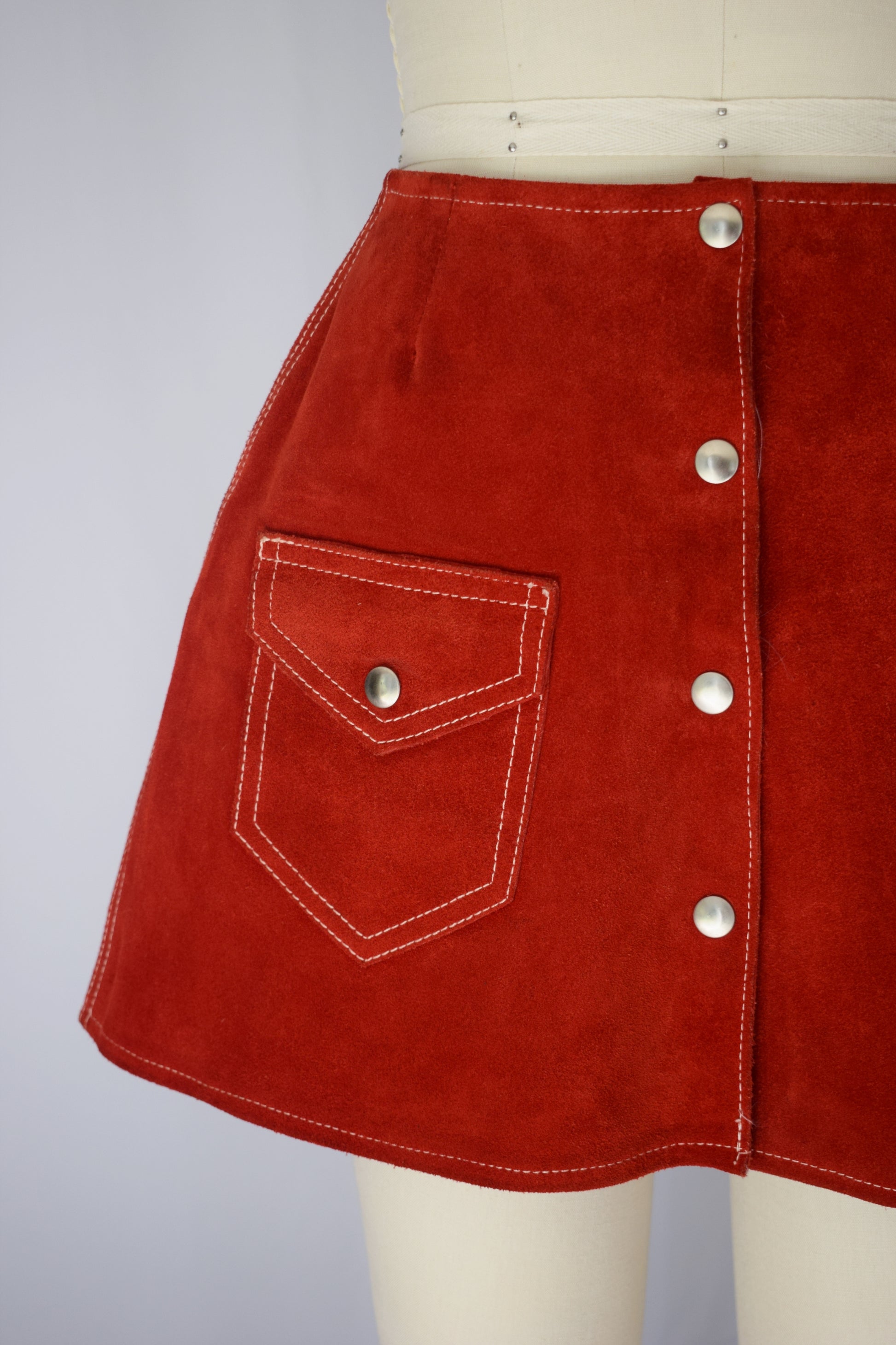 1960s/70s Cherry Red Suede Mini Skirt | S