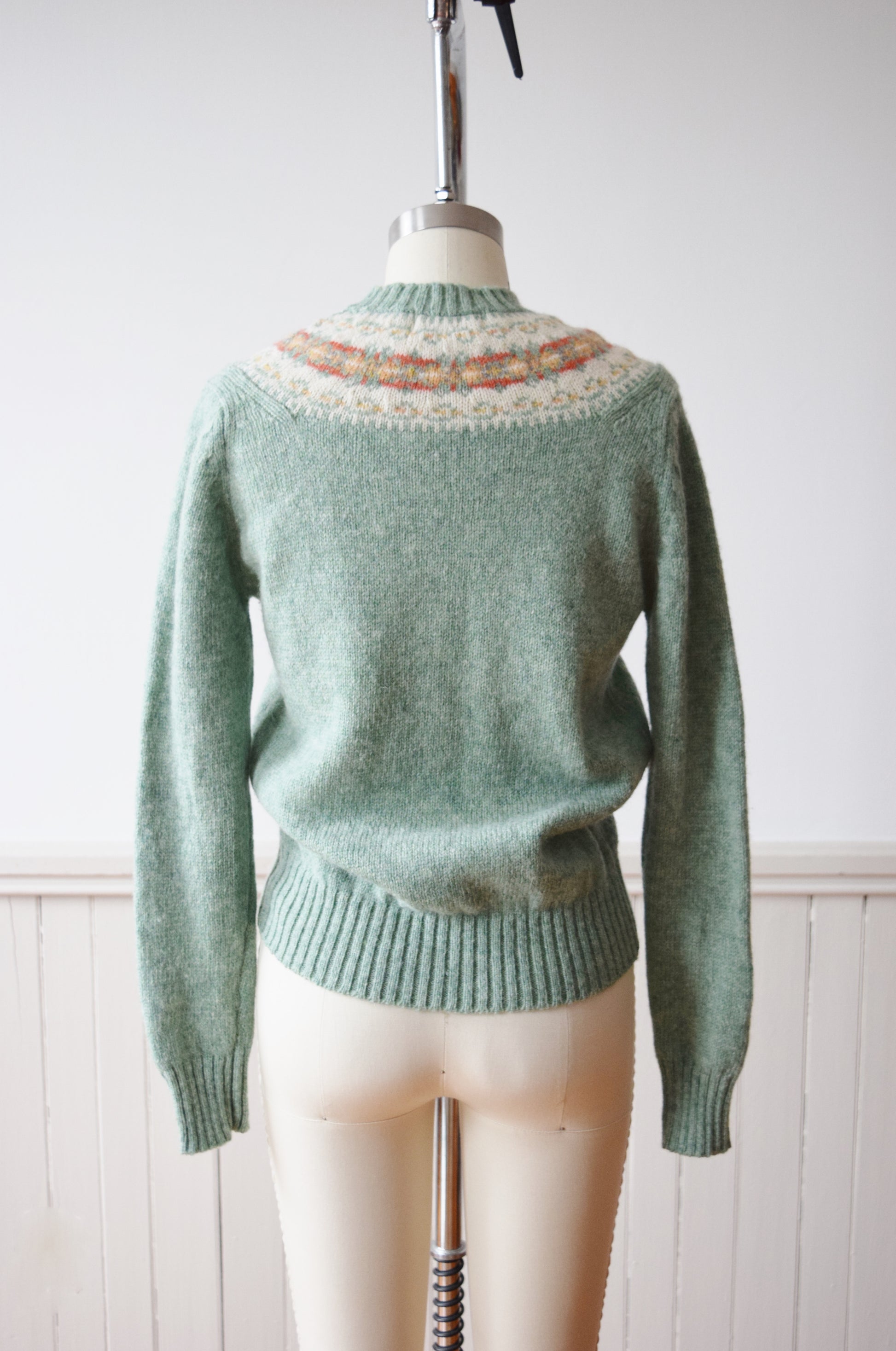 1970s Fair Isle Sage Green Pullover Sweater | S-S/M