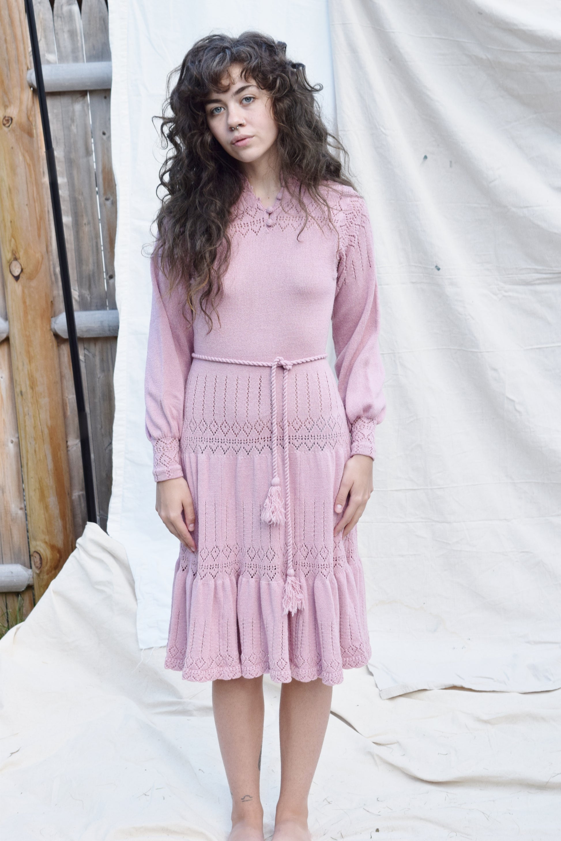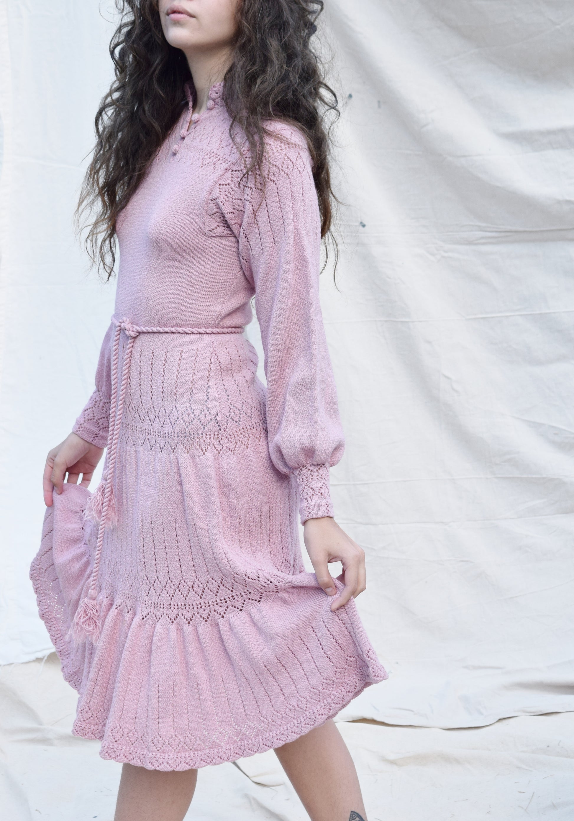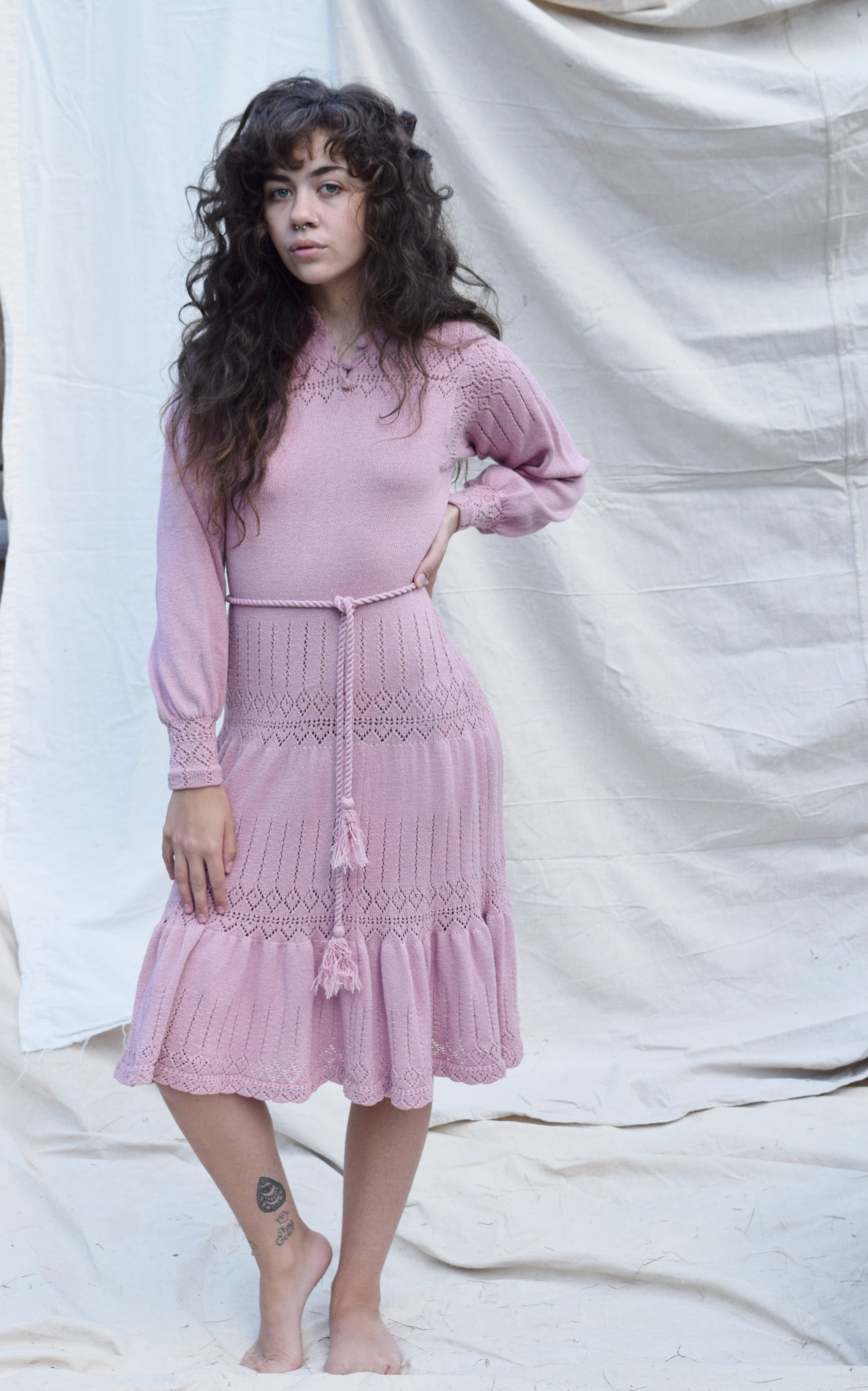1940s inspired with bishop sleeves and tiered skirt. tassel rope belt.