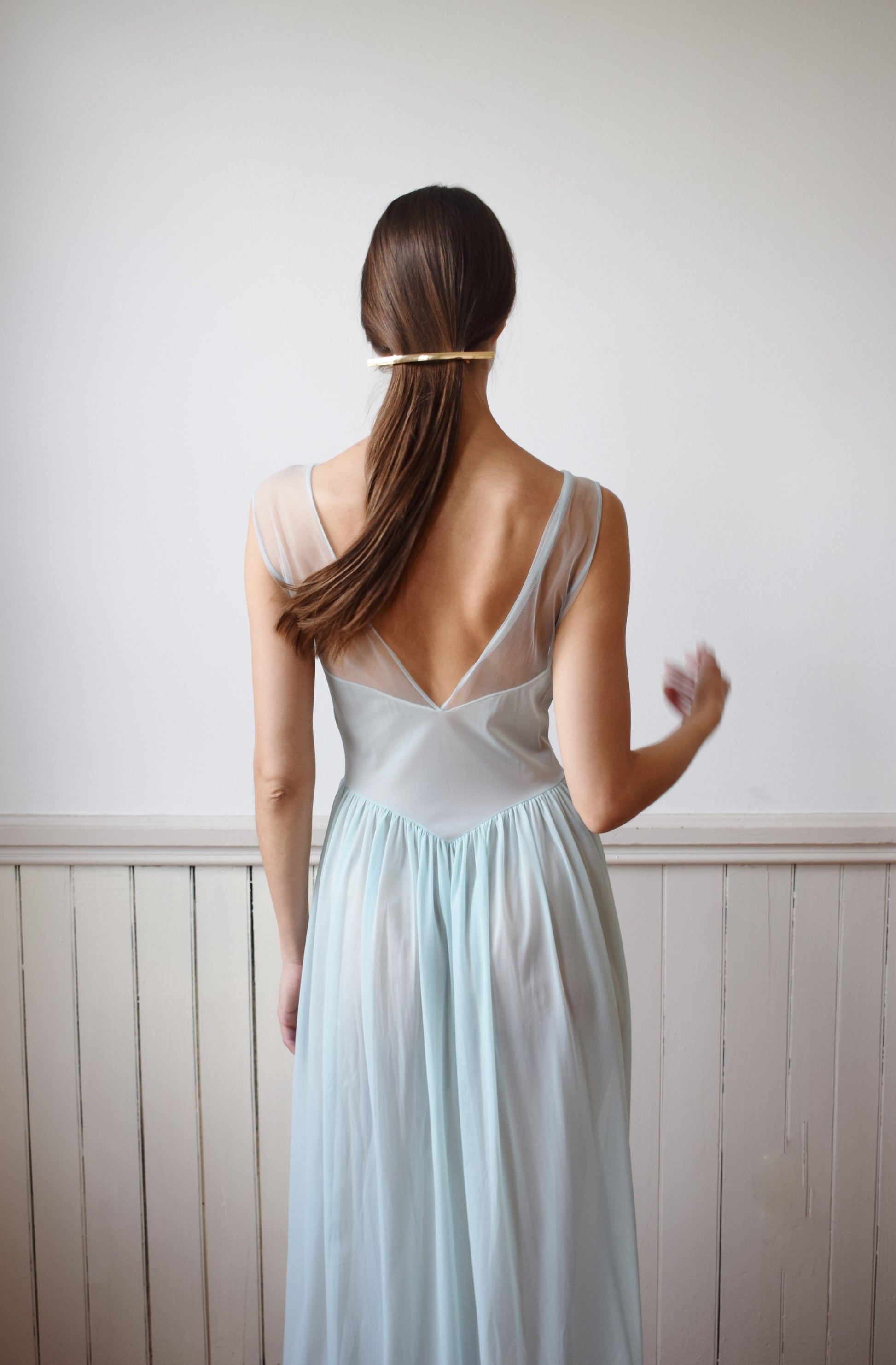 1970s Robin's Egg Blue Nylon Nightgown | S/M