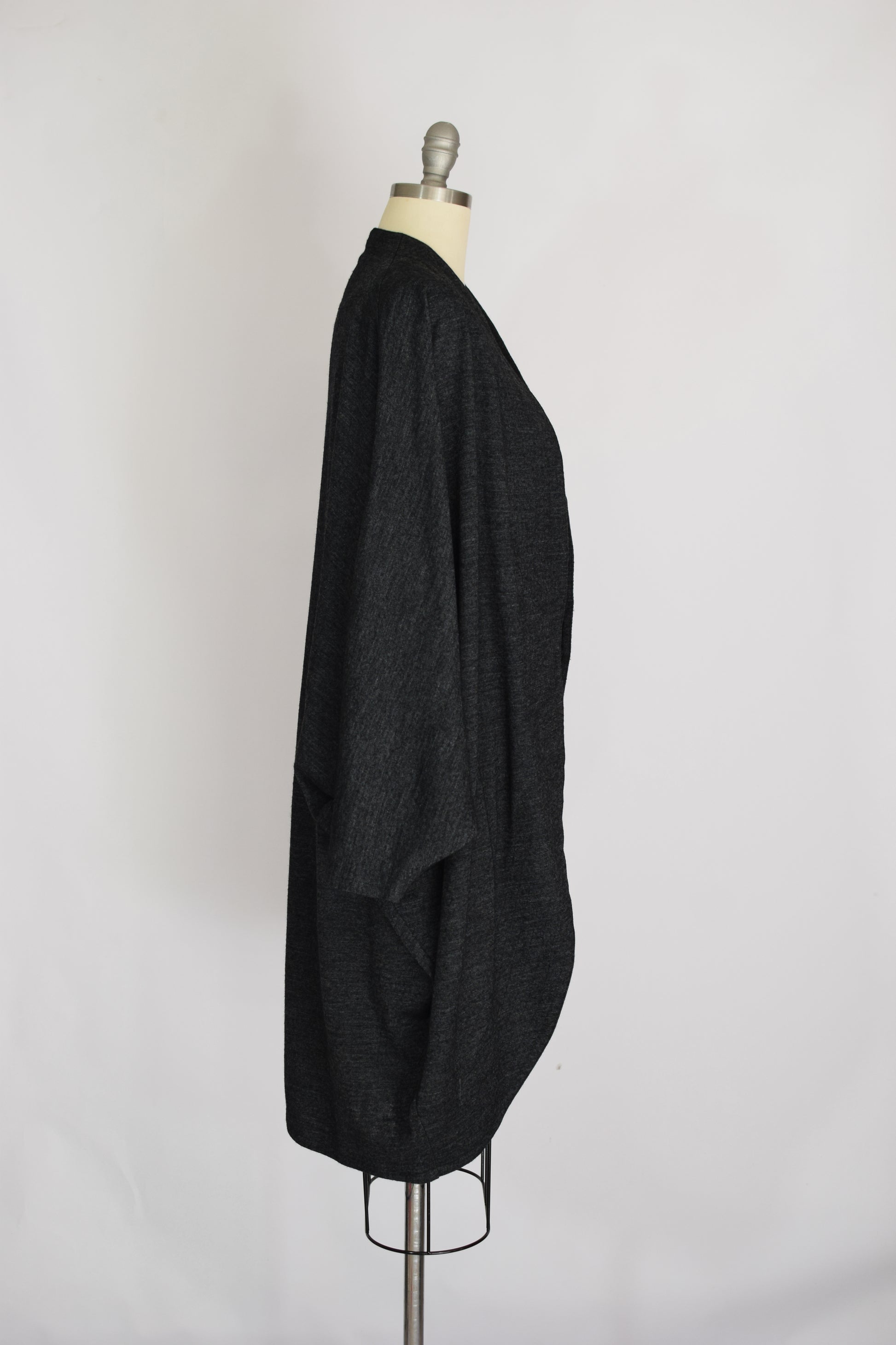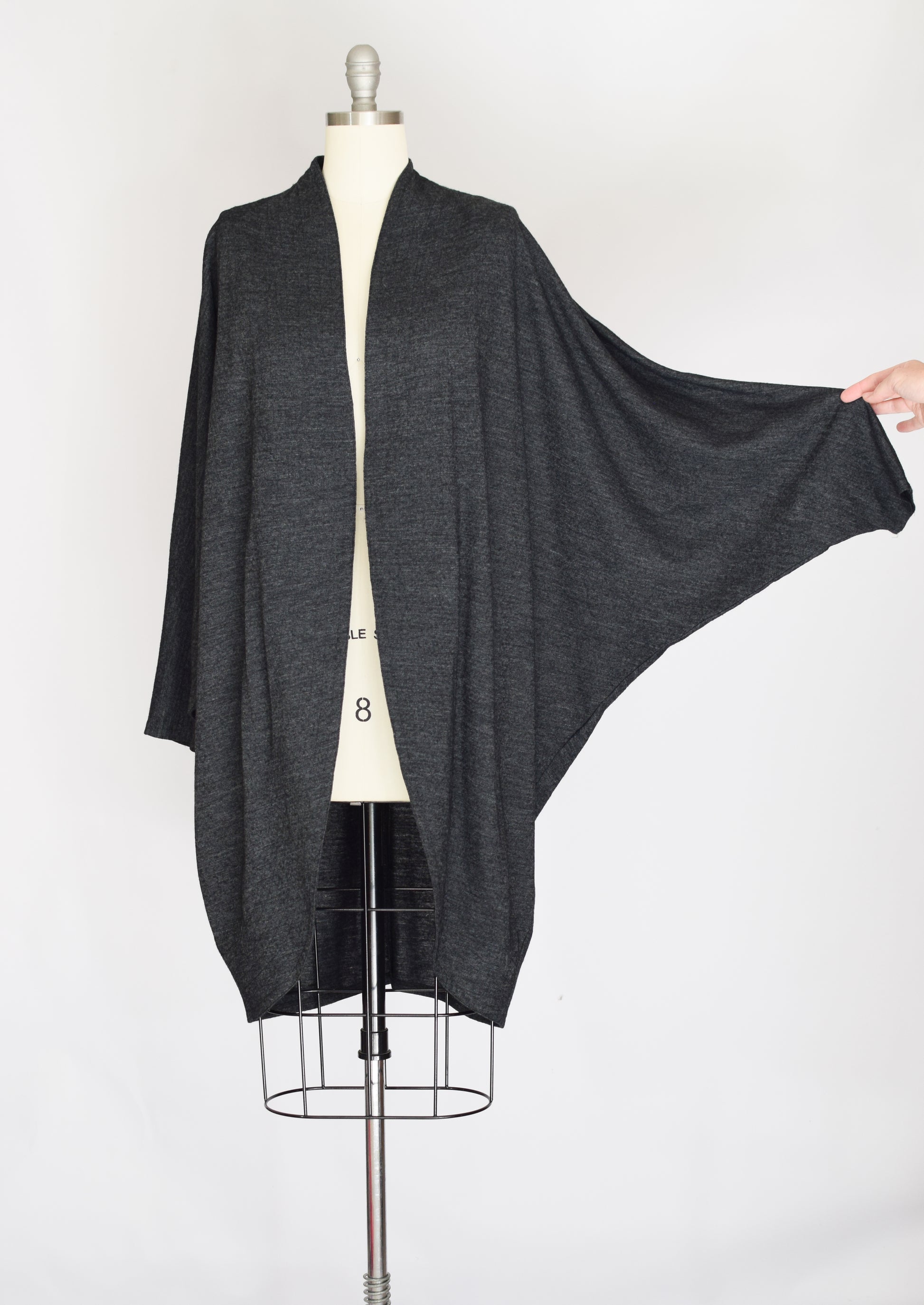 drapey mottled grey wool blend with stitched lapels for some light structure. open front.