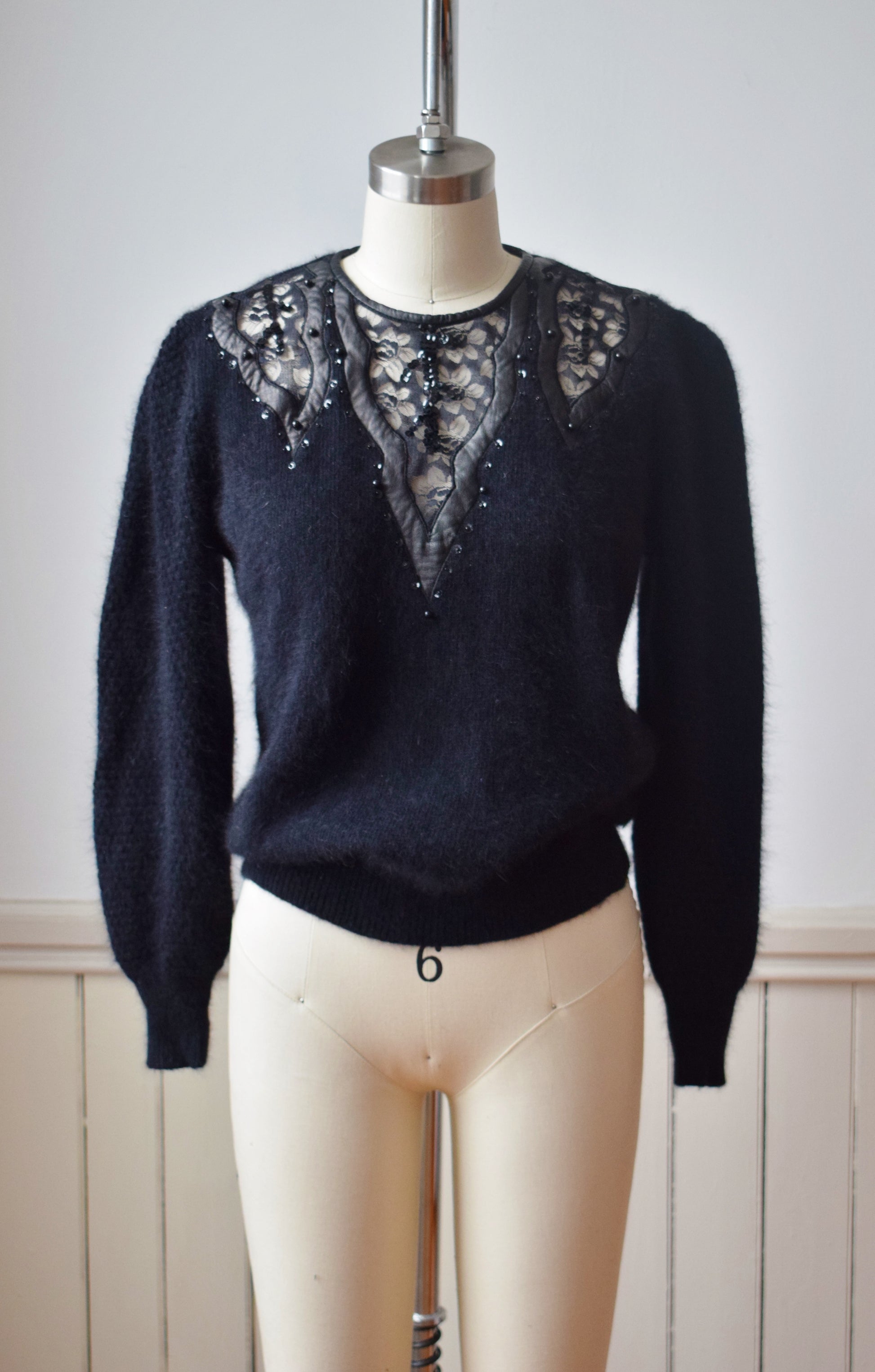1980s Angora, Leather and Lace Sweater | S/M