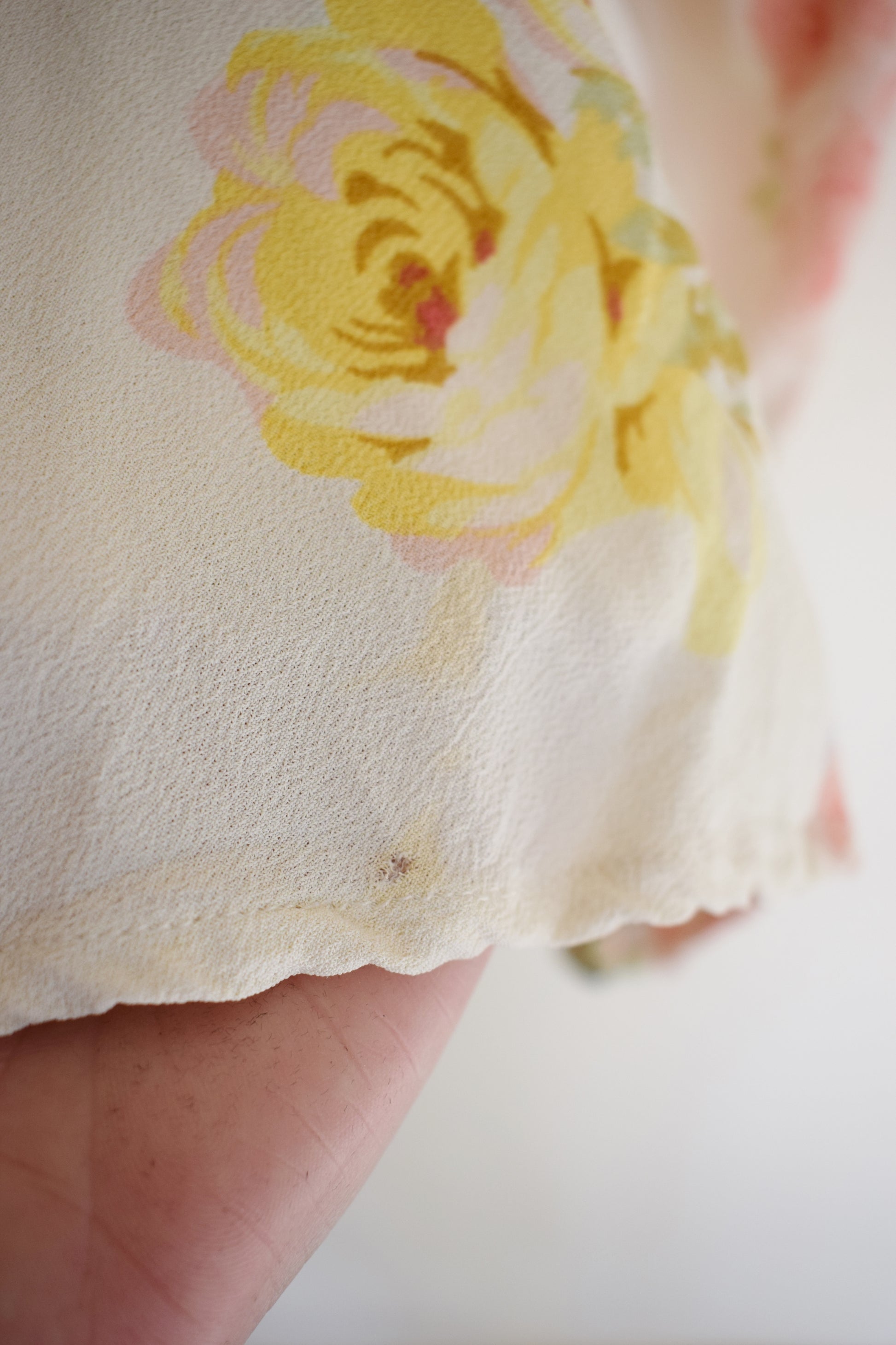 30s-inspired bias cut rayon in a pretty pastel floral print. low back with zipper.