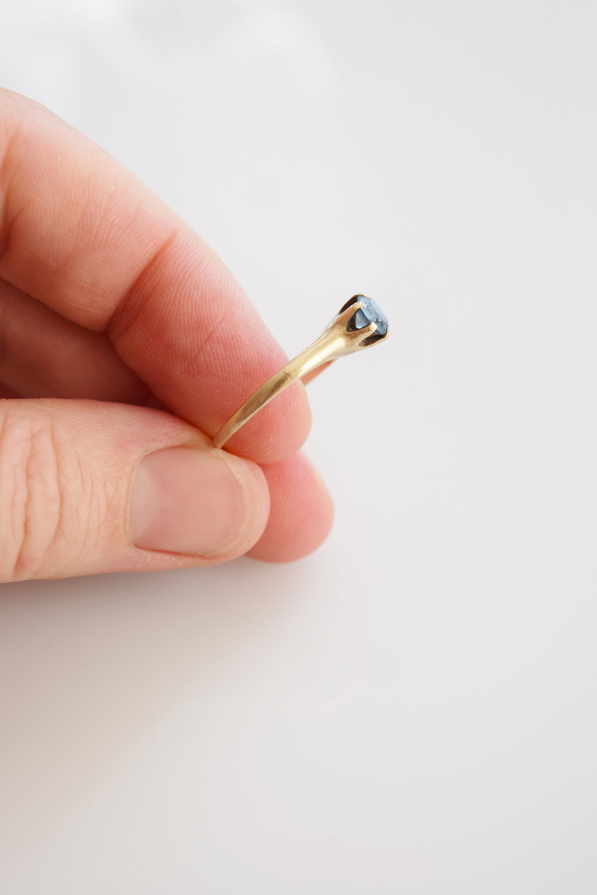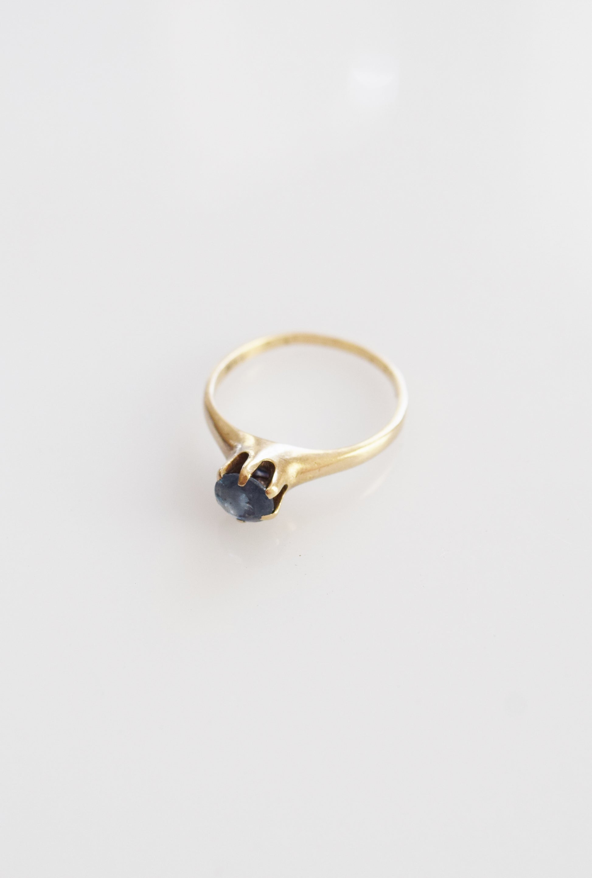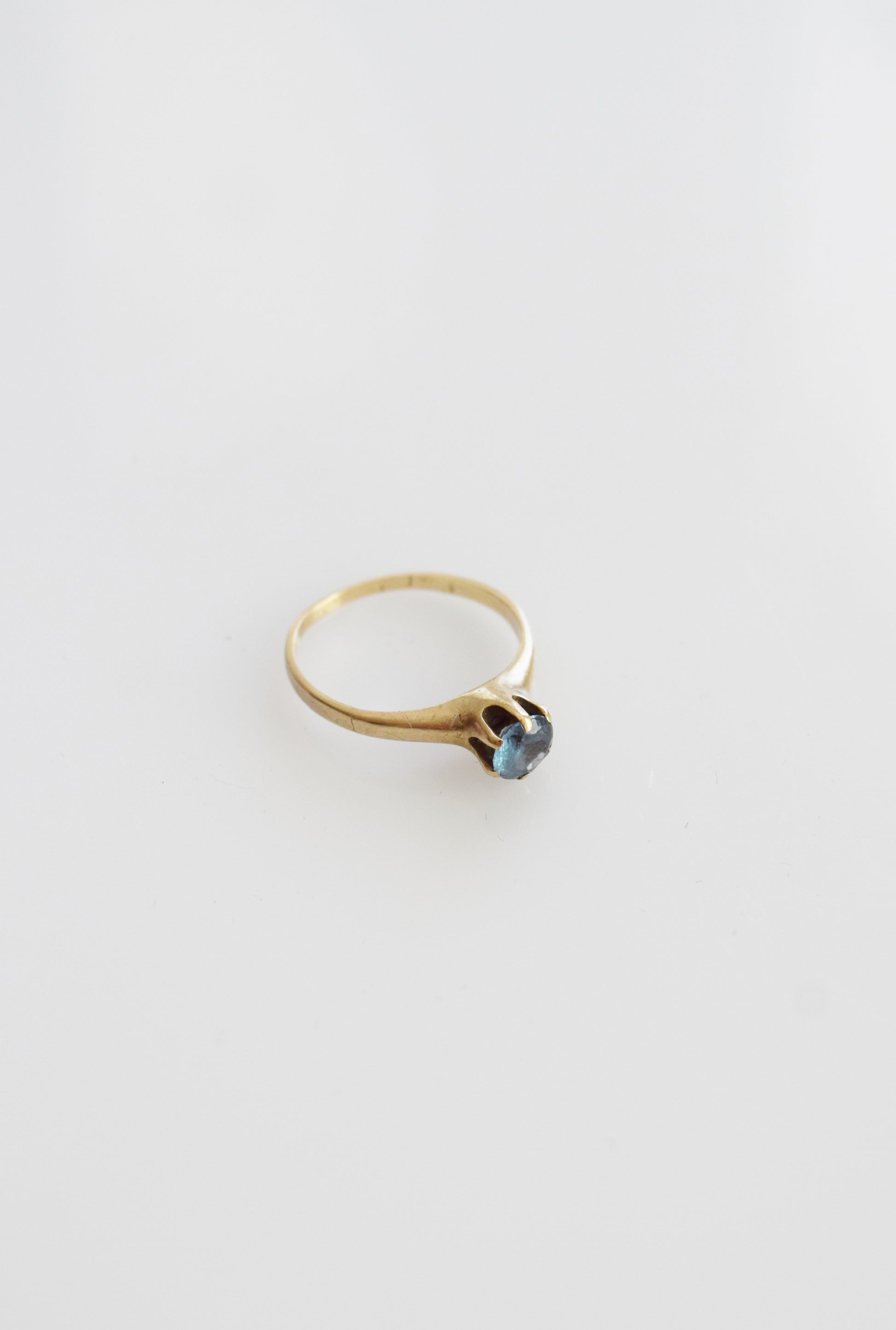 Antique 10k Gold and Aquamarine Stacking Ring | 6.5