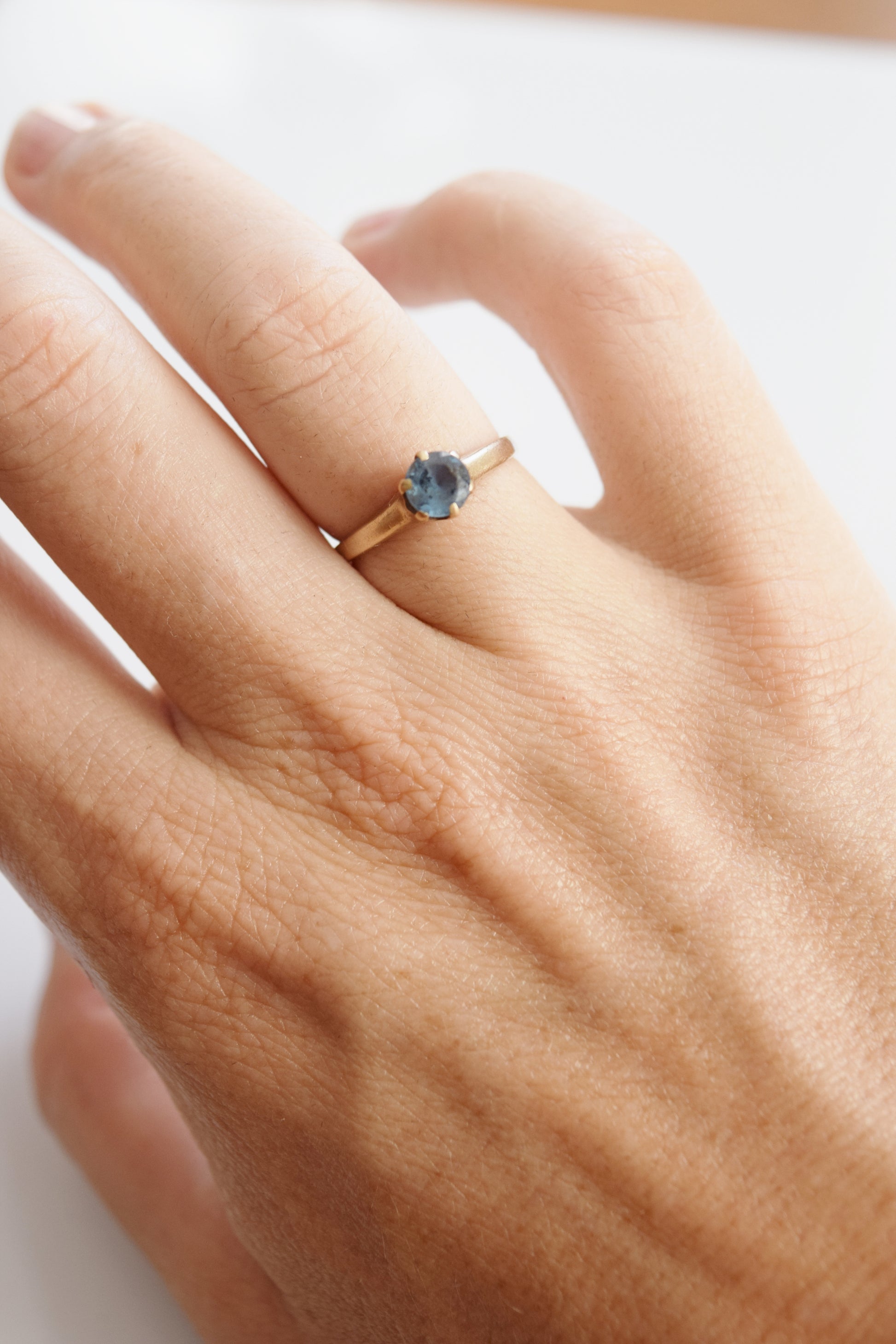 Simple + elegant gold band with prong-set aquamarine stone. Sweet alone, or perfect size for making a stack!