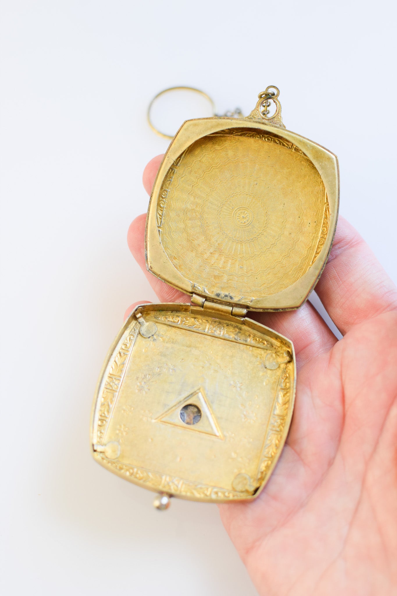Antique 1920s Art Deco Compact with Enamel Accent and Finger Ring