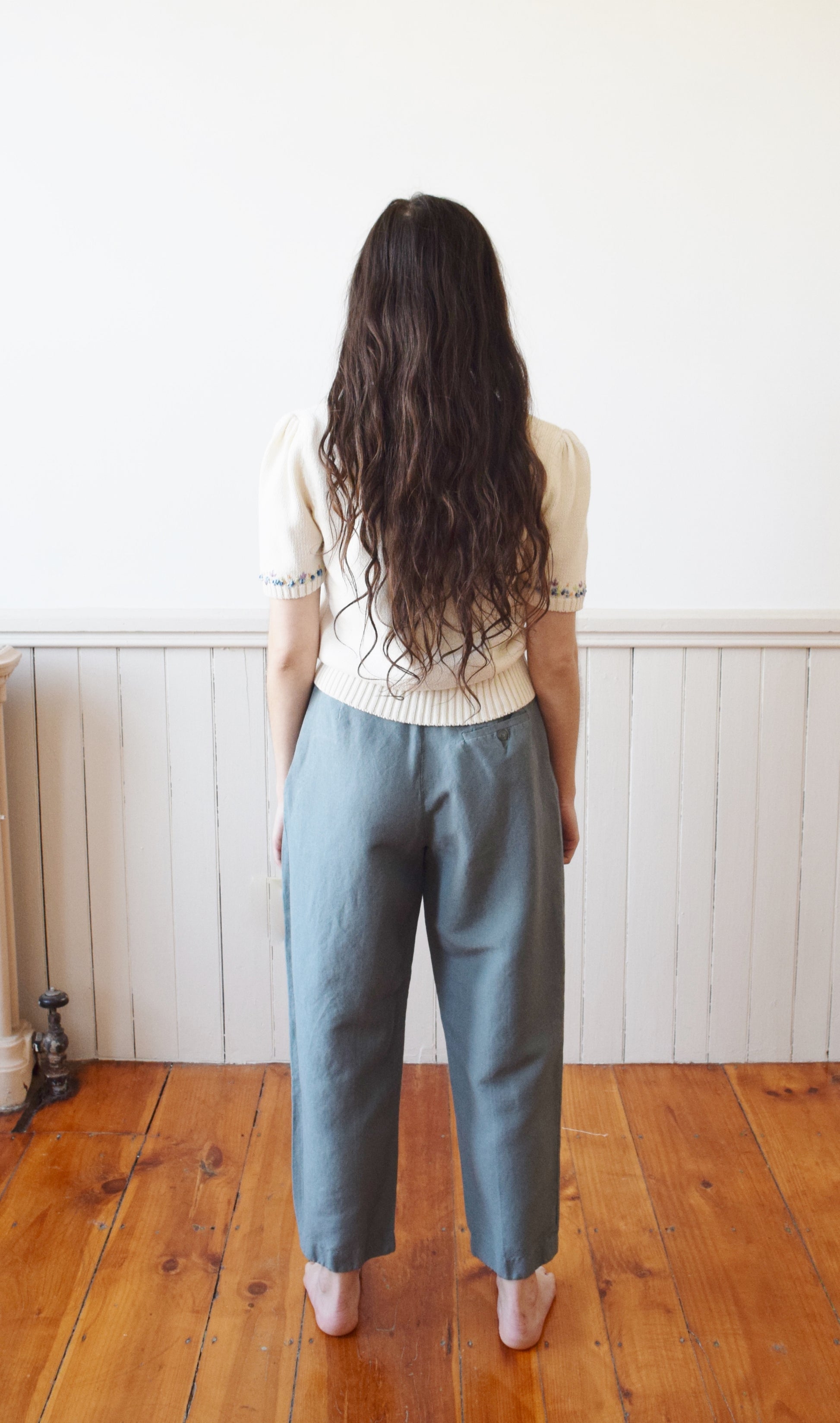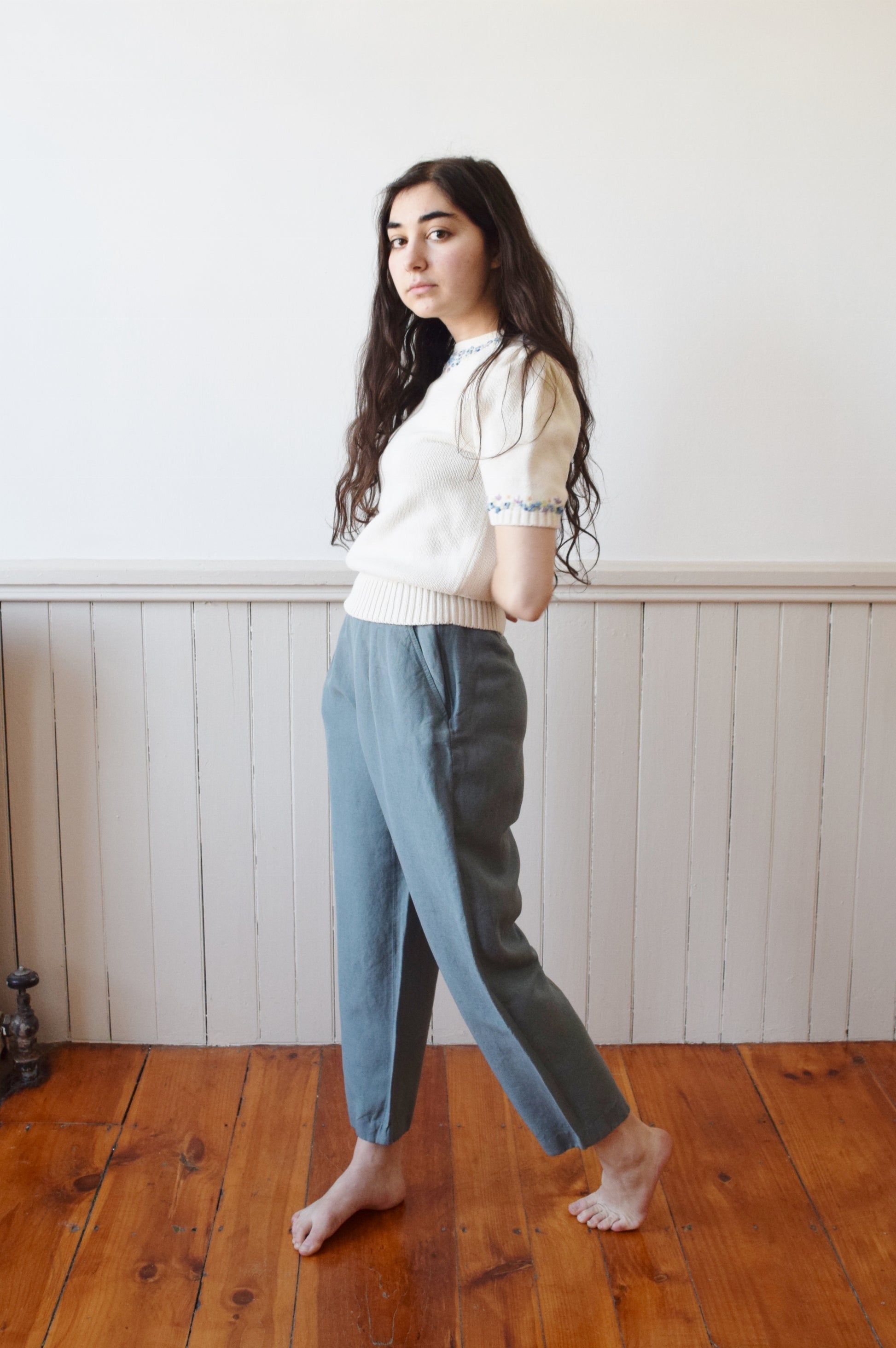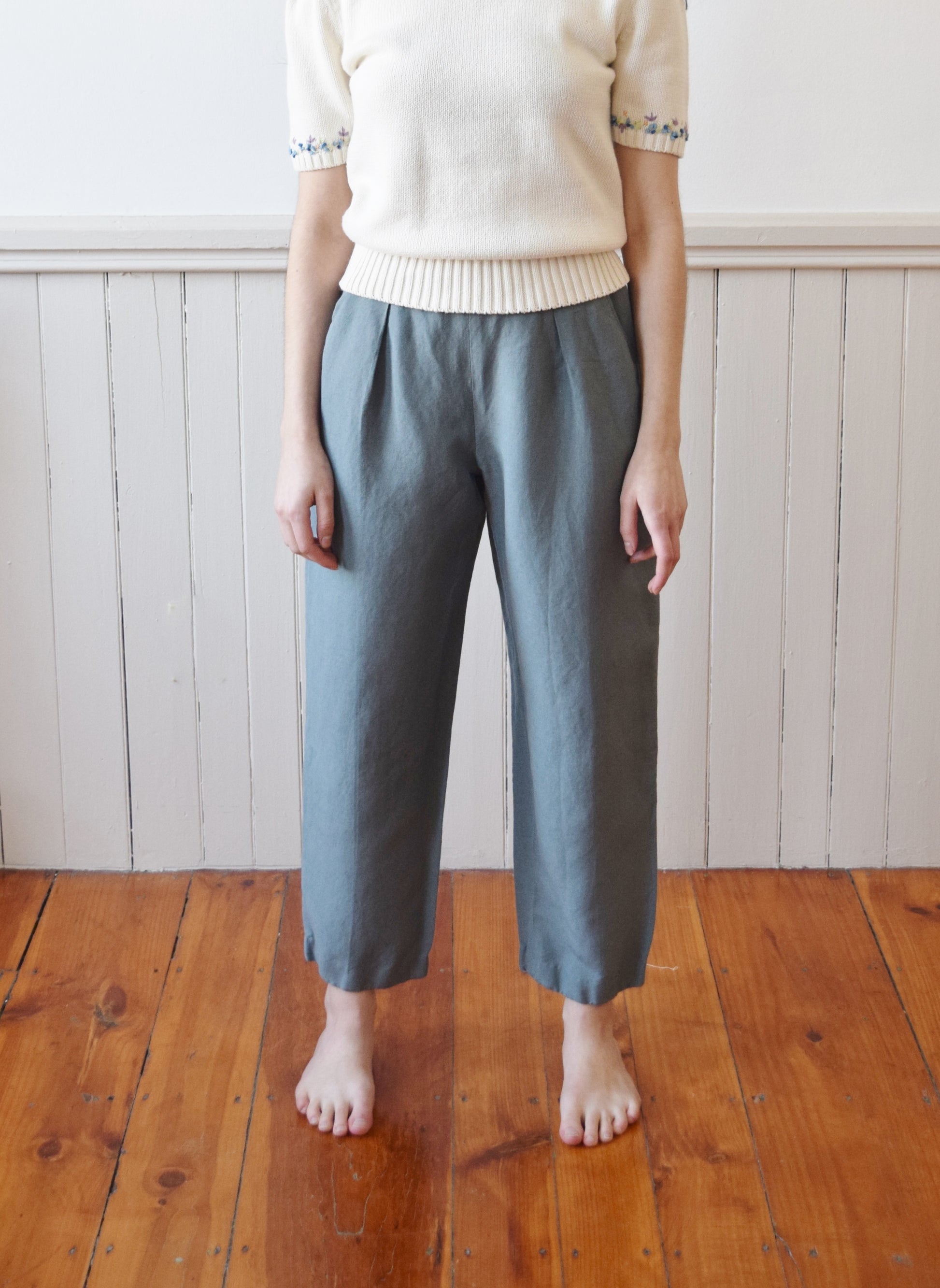 Classic Linen Trouser in Slate Blue | 1990s | 26" W