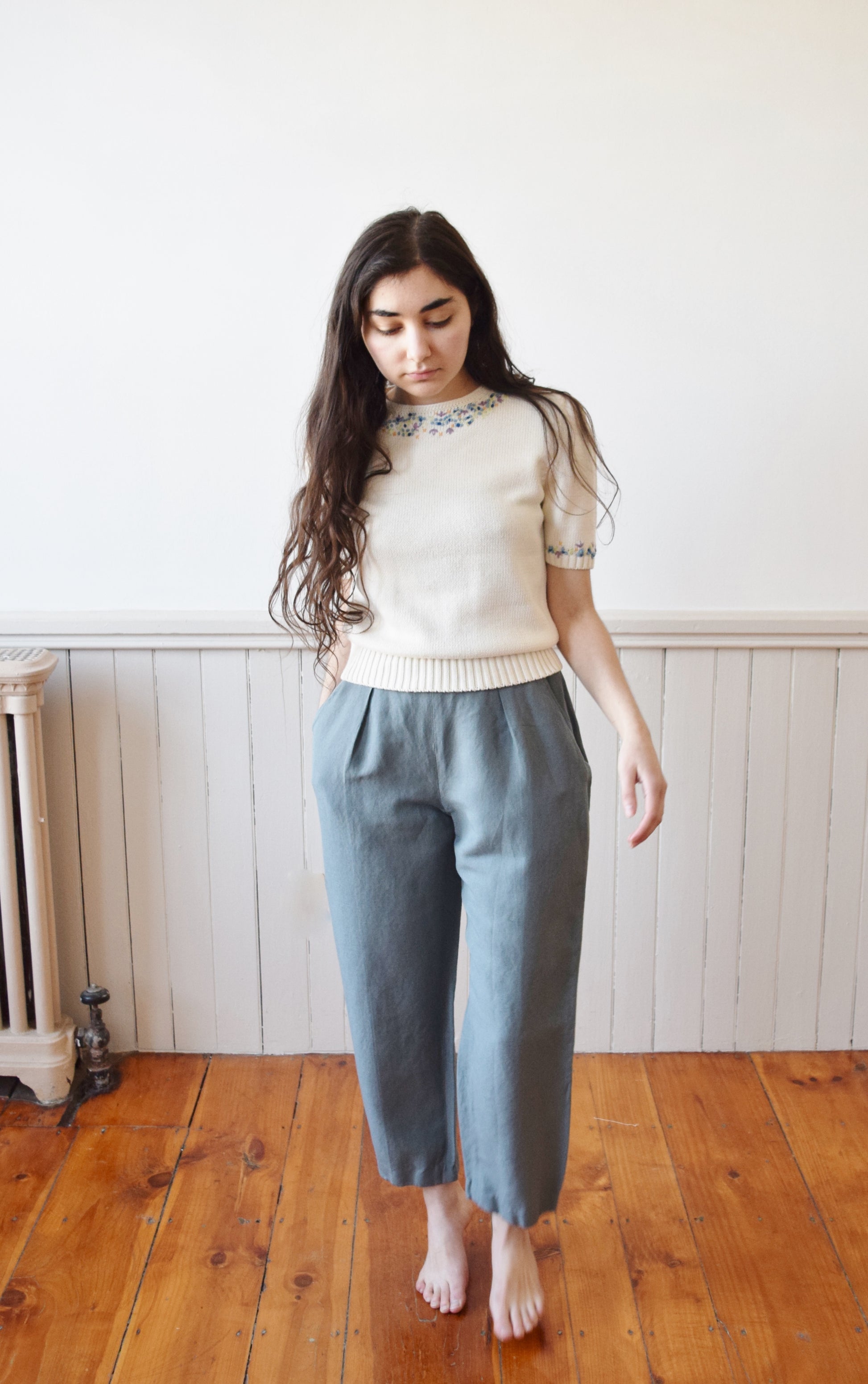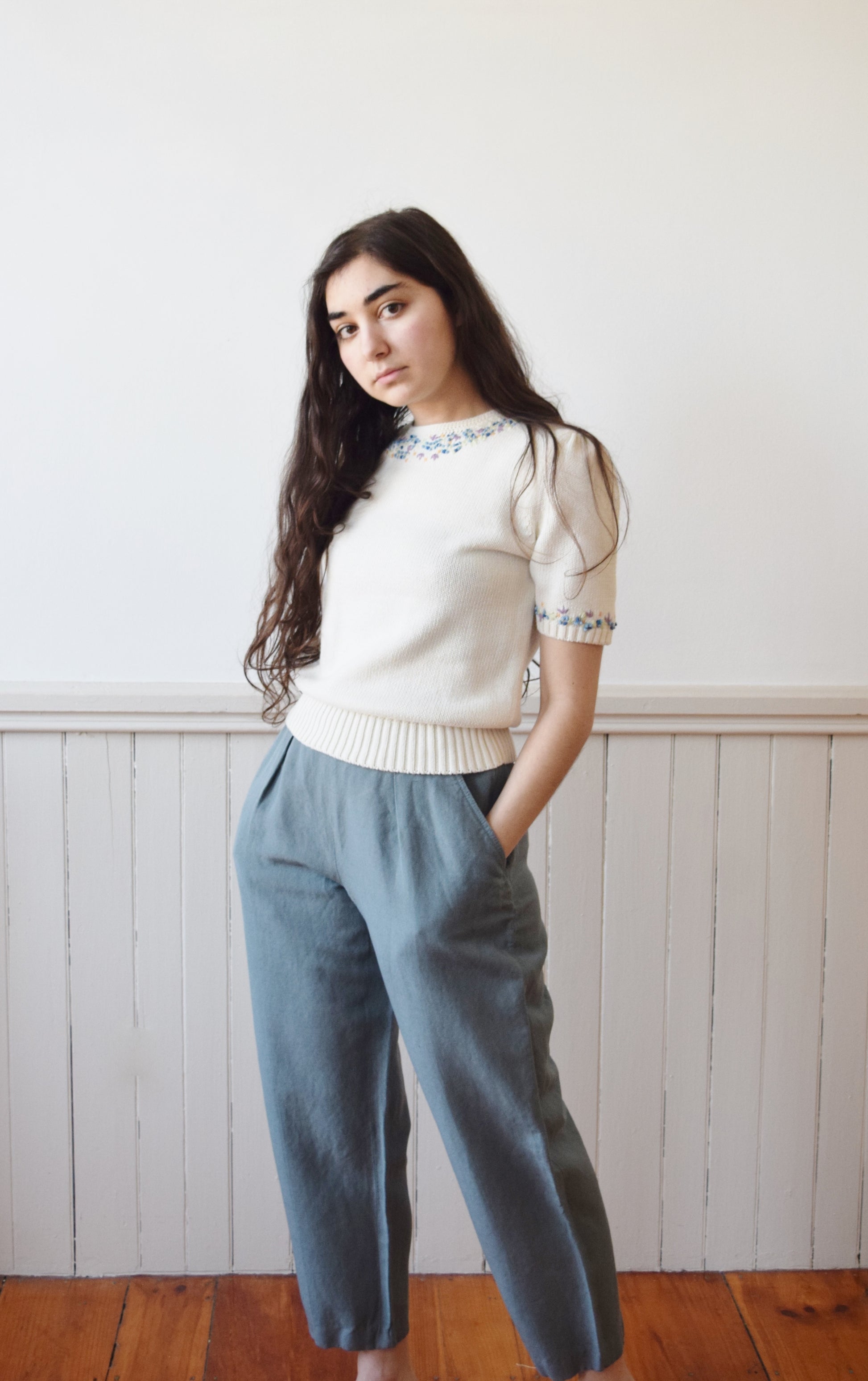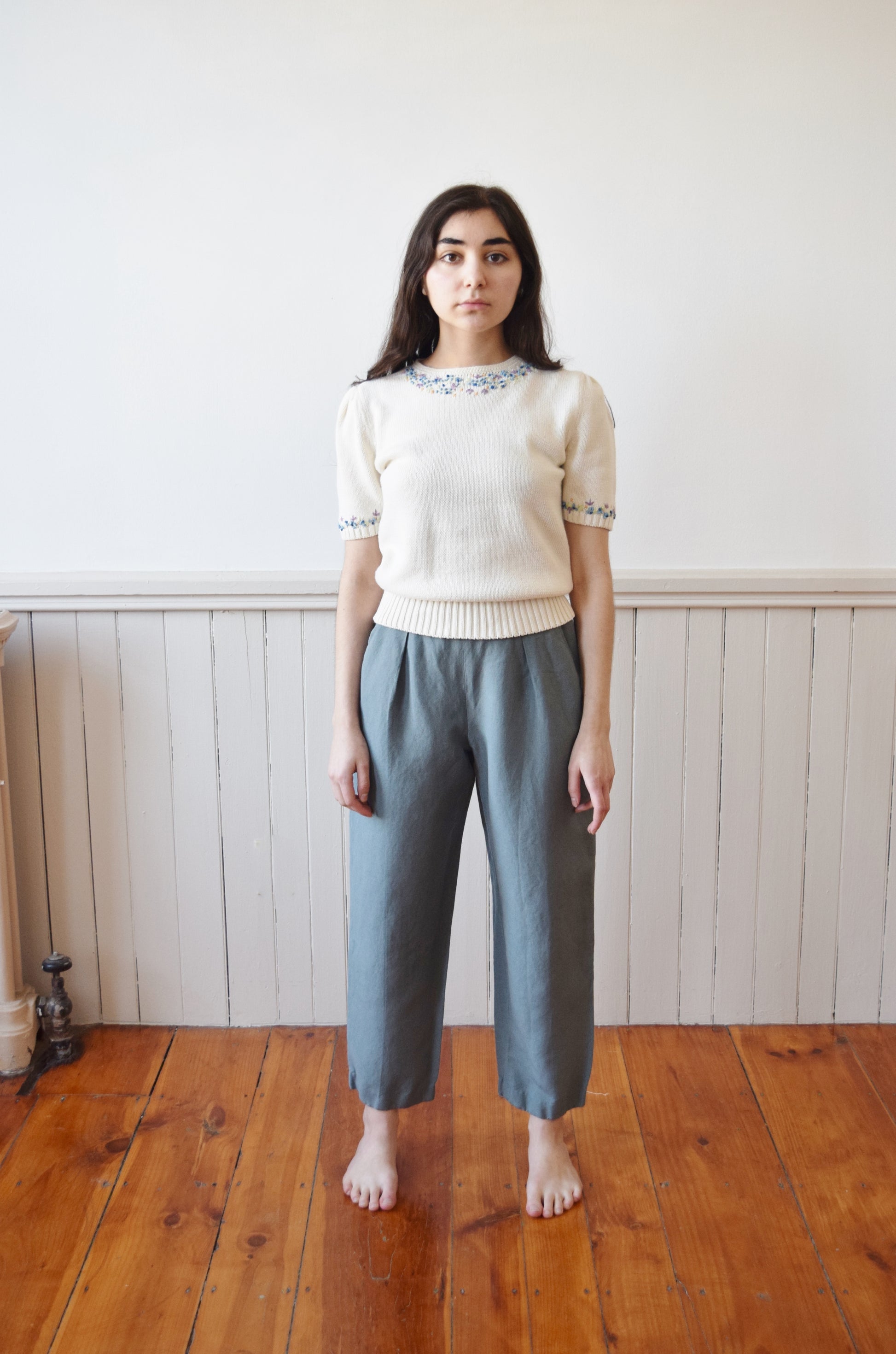 Classic Linen Trouser in Slate Blue | 1990s | 26" W
