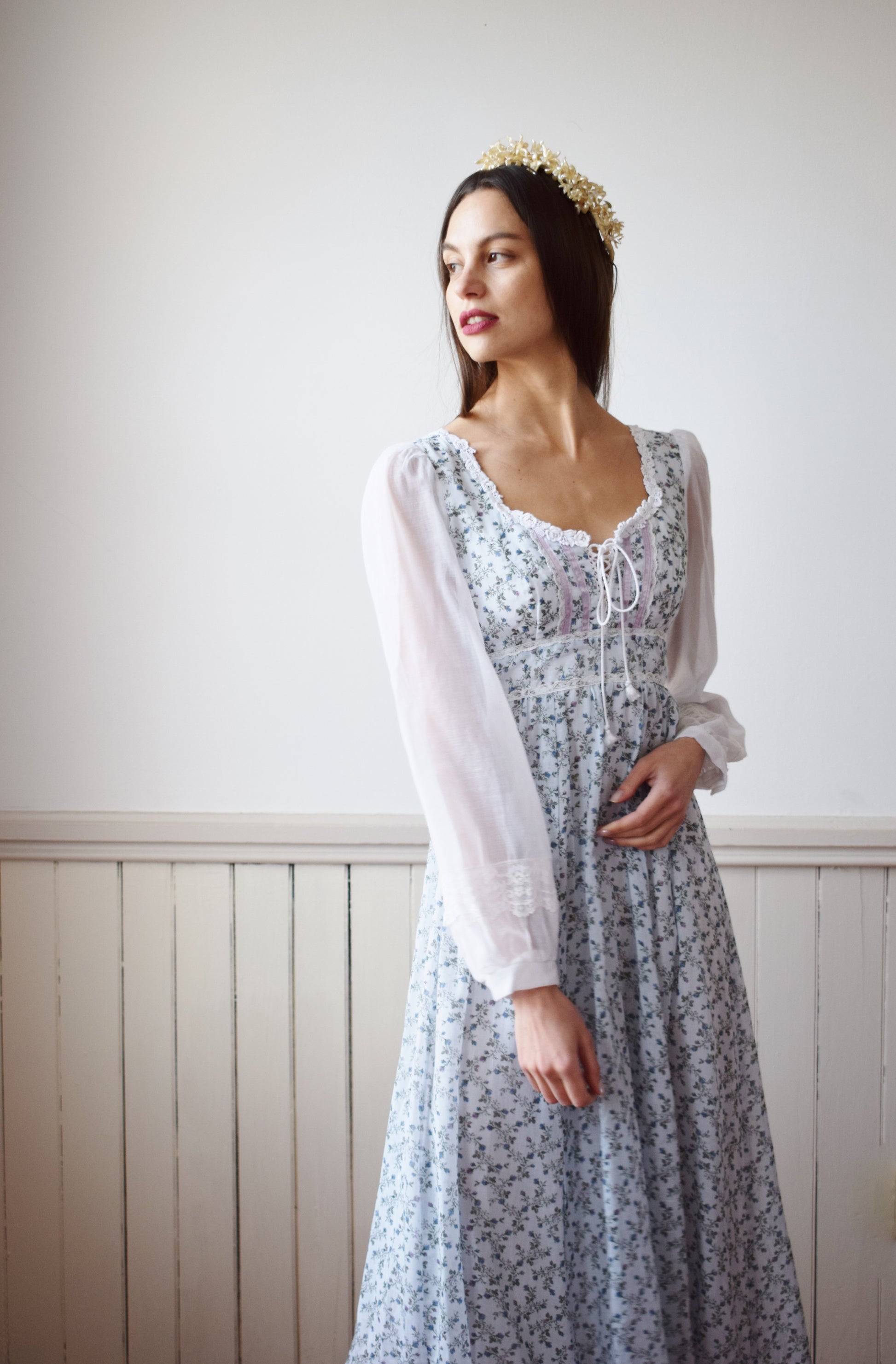 1970s Gunne Sax Gown | Blue FLoral | XXS/XS