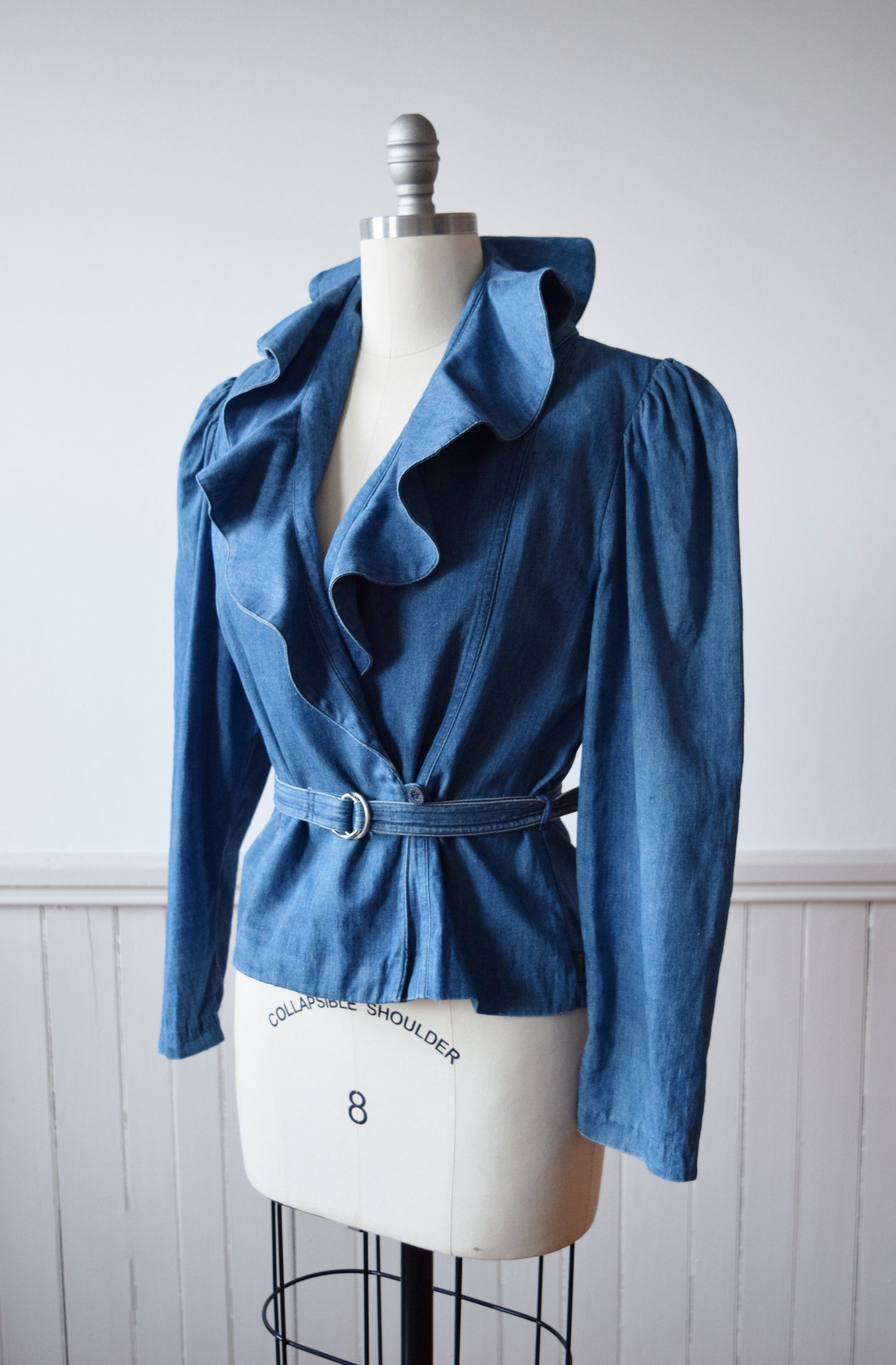 Denim Ruffled Wrap Top, Bis by Gene Ewing | S/M