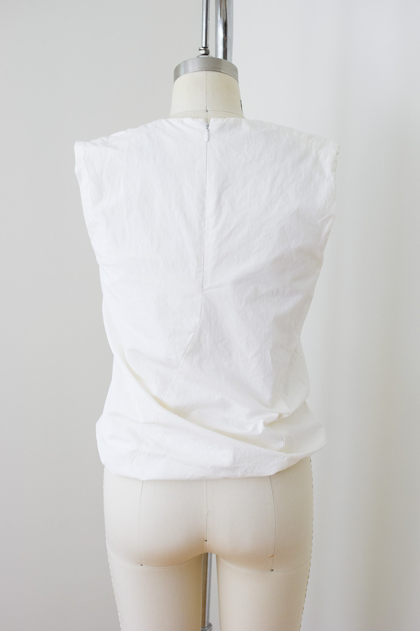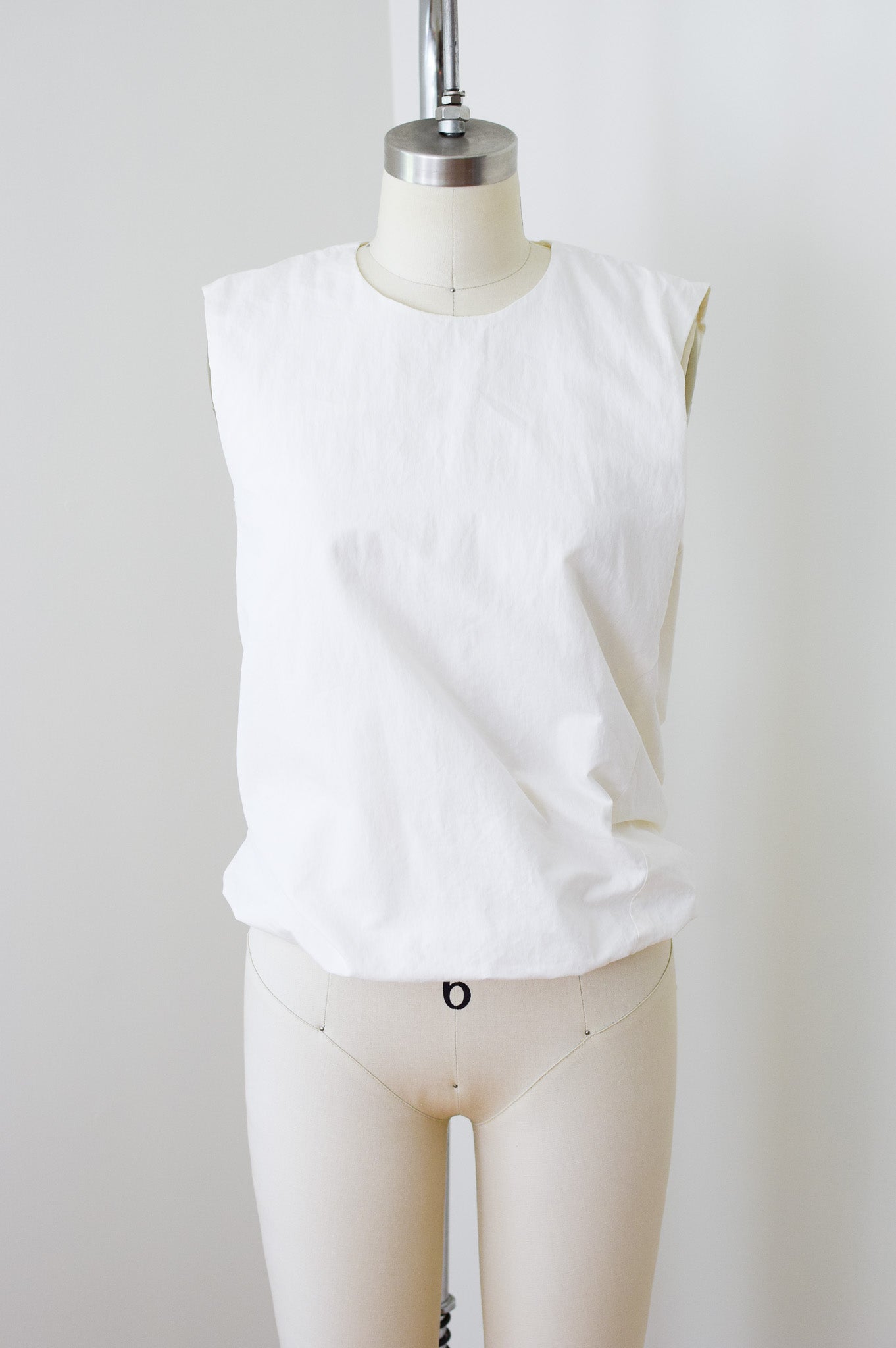 softly structured silk/cotton blend, fully lined in lightweight silk. sculptural asymmetrical seams and elastic bubble hem. hidden zipper in the back.