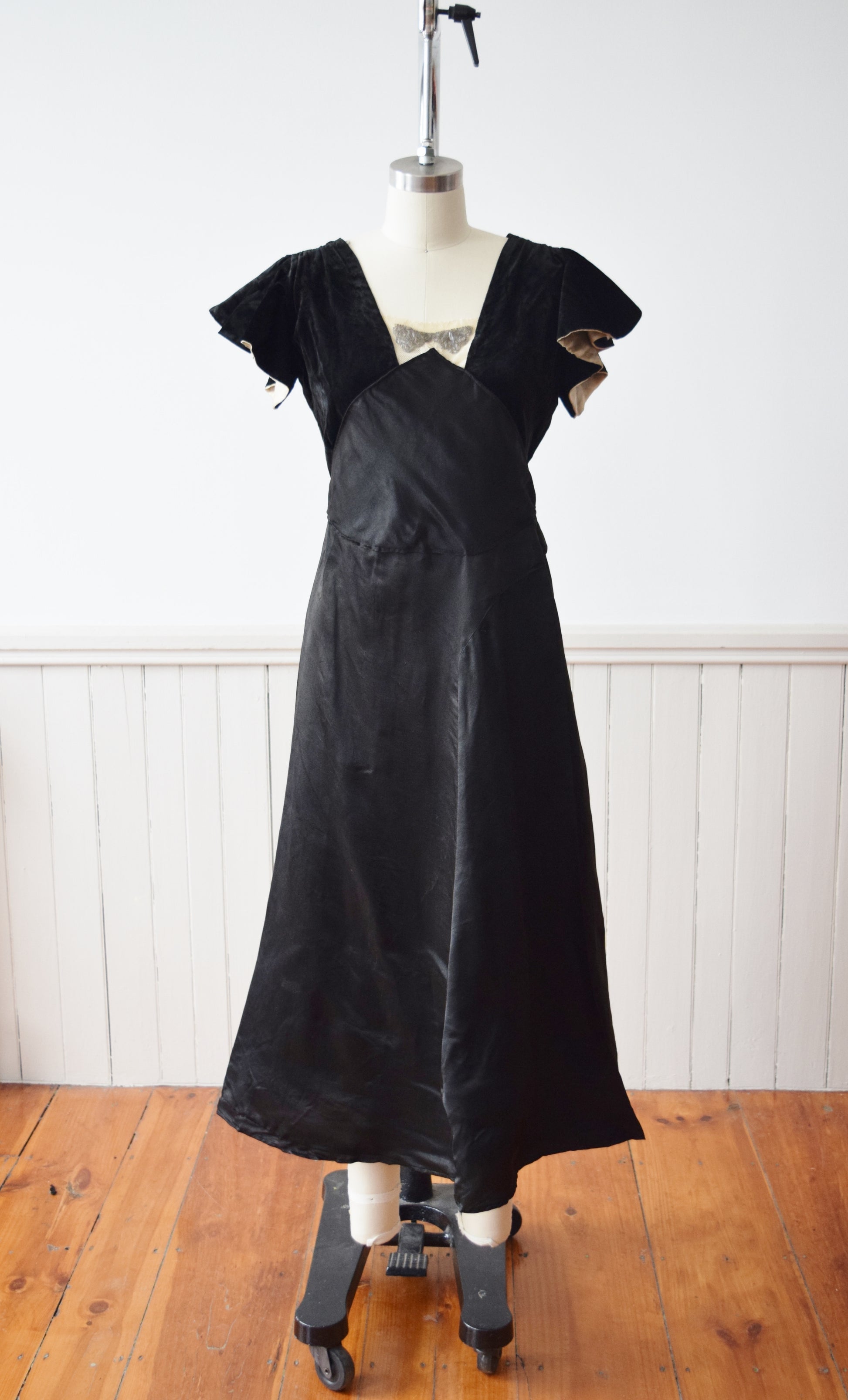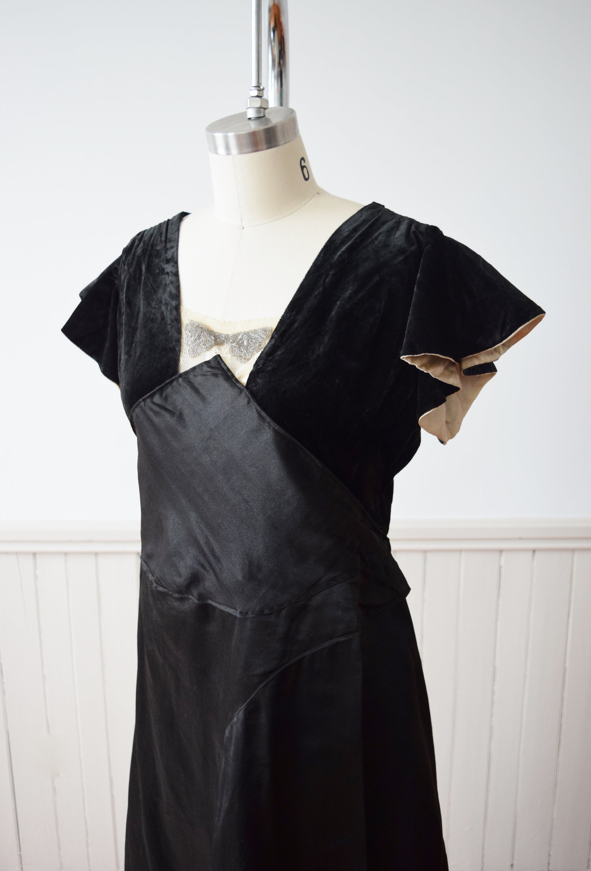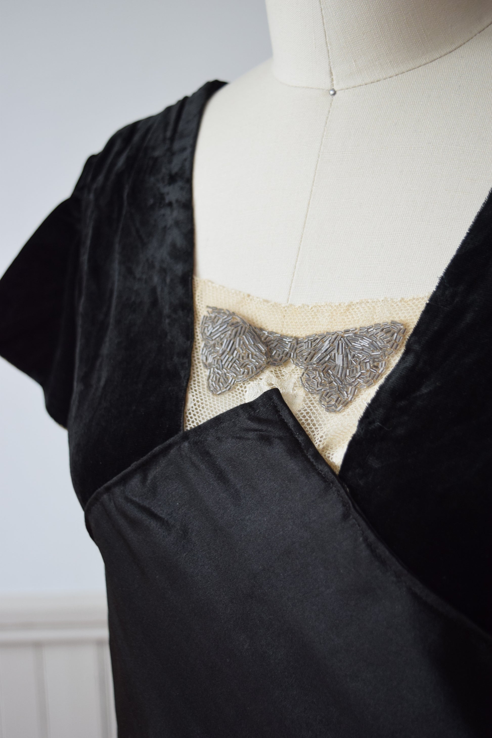 material: silk velvet, silk satin, lace, beading