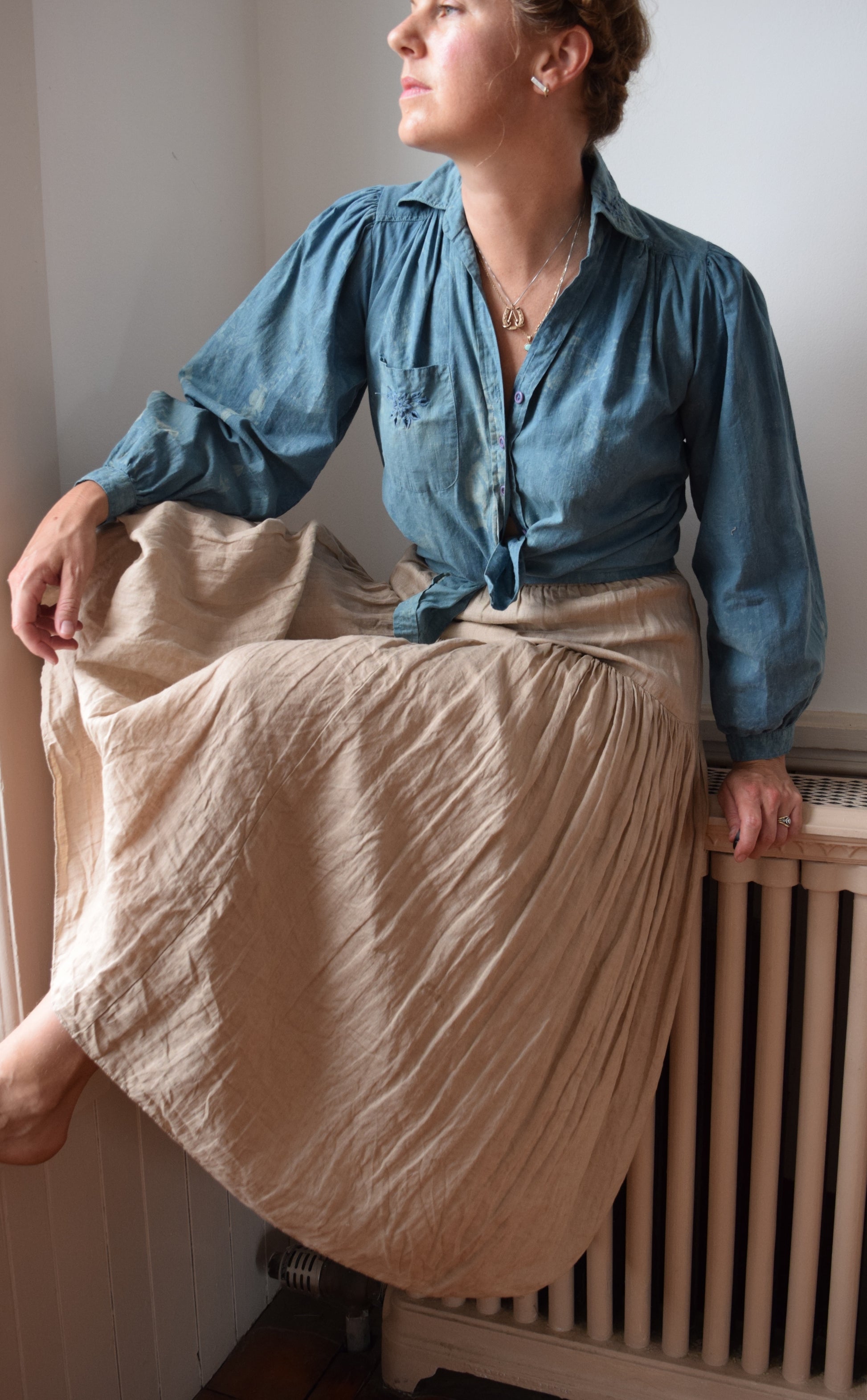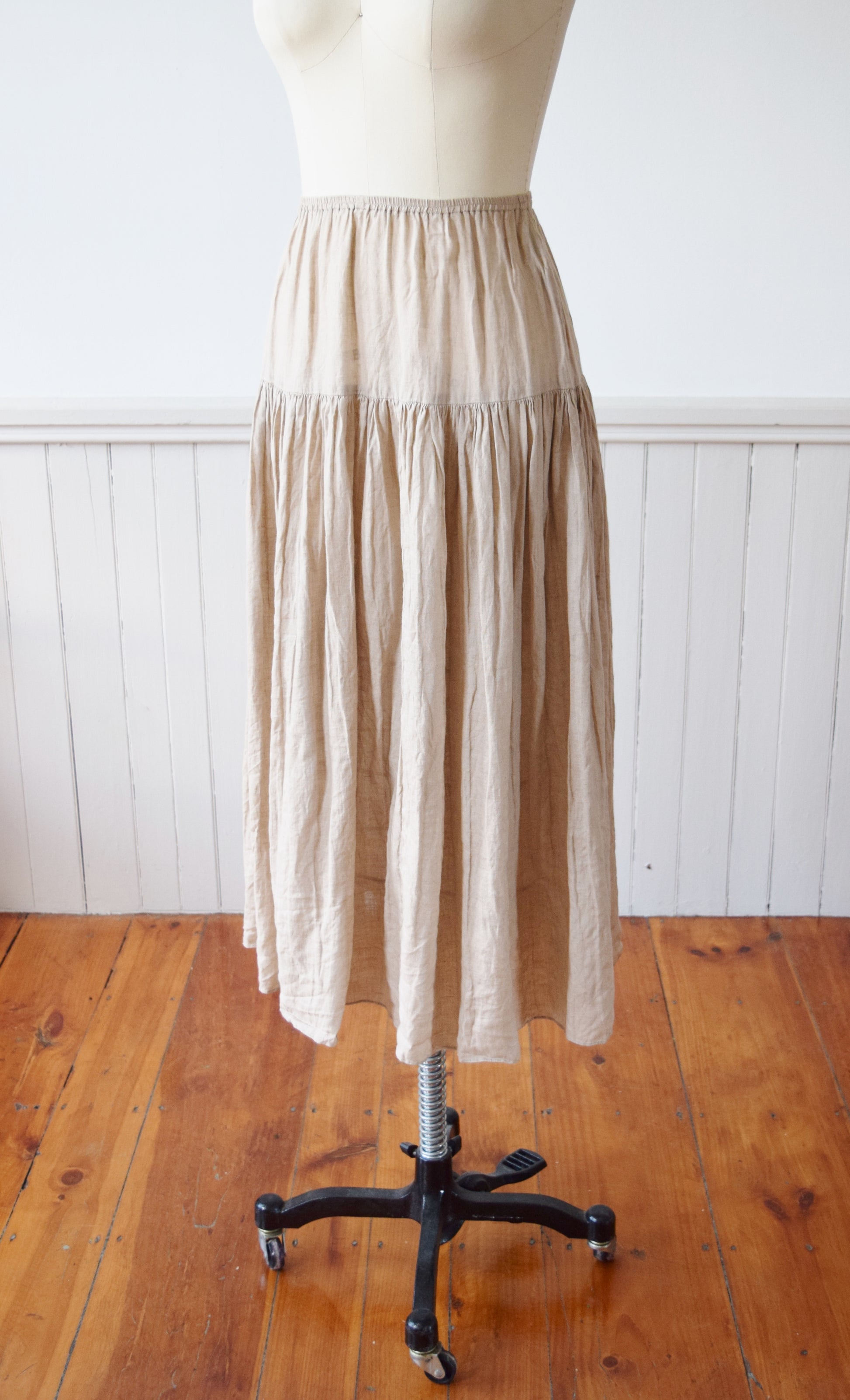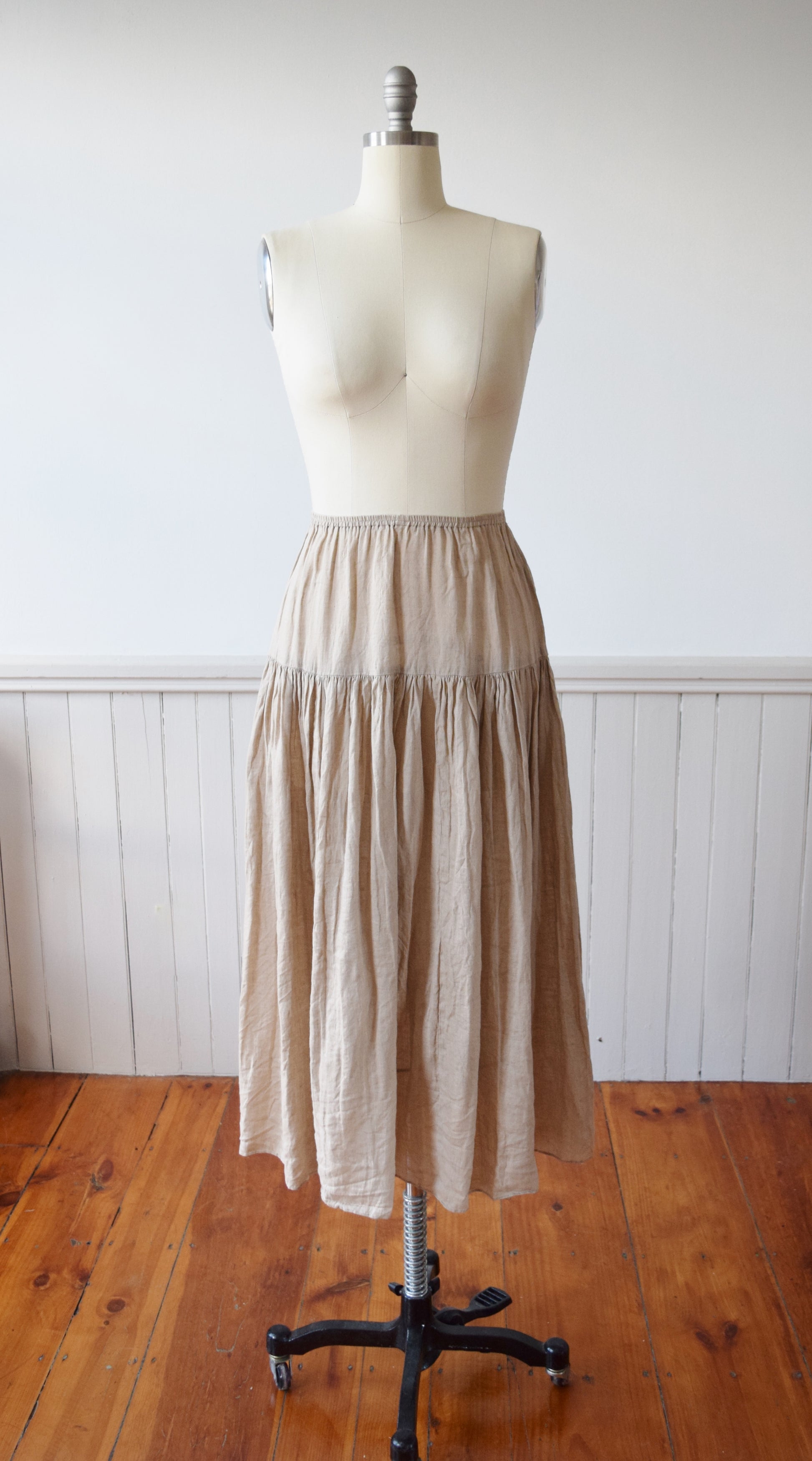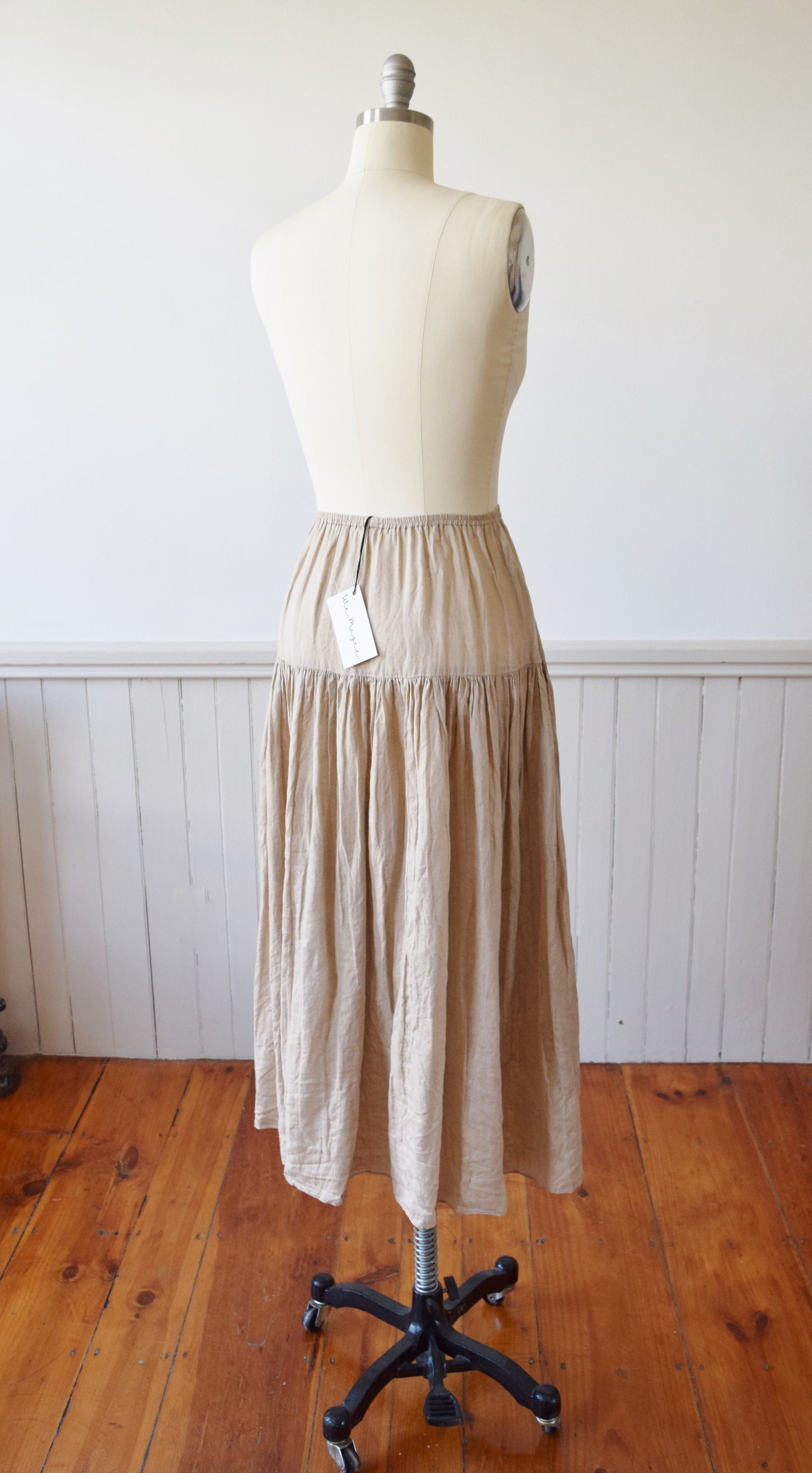 elastic waist, yoked hips and full skirt. Beautiful drape + movement.