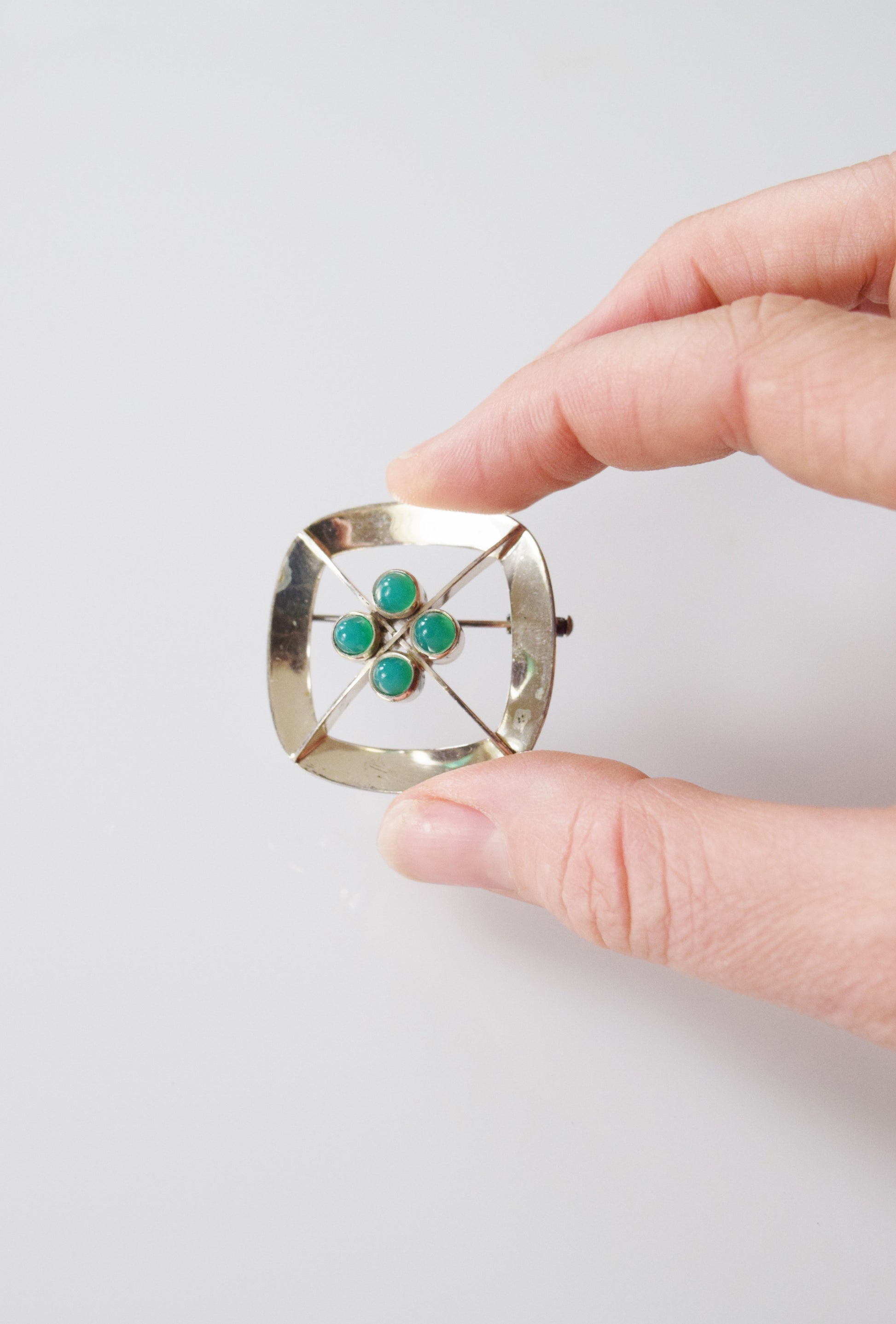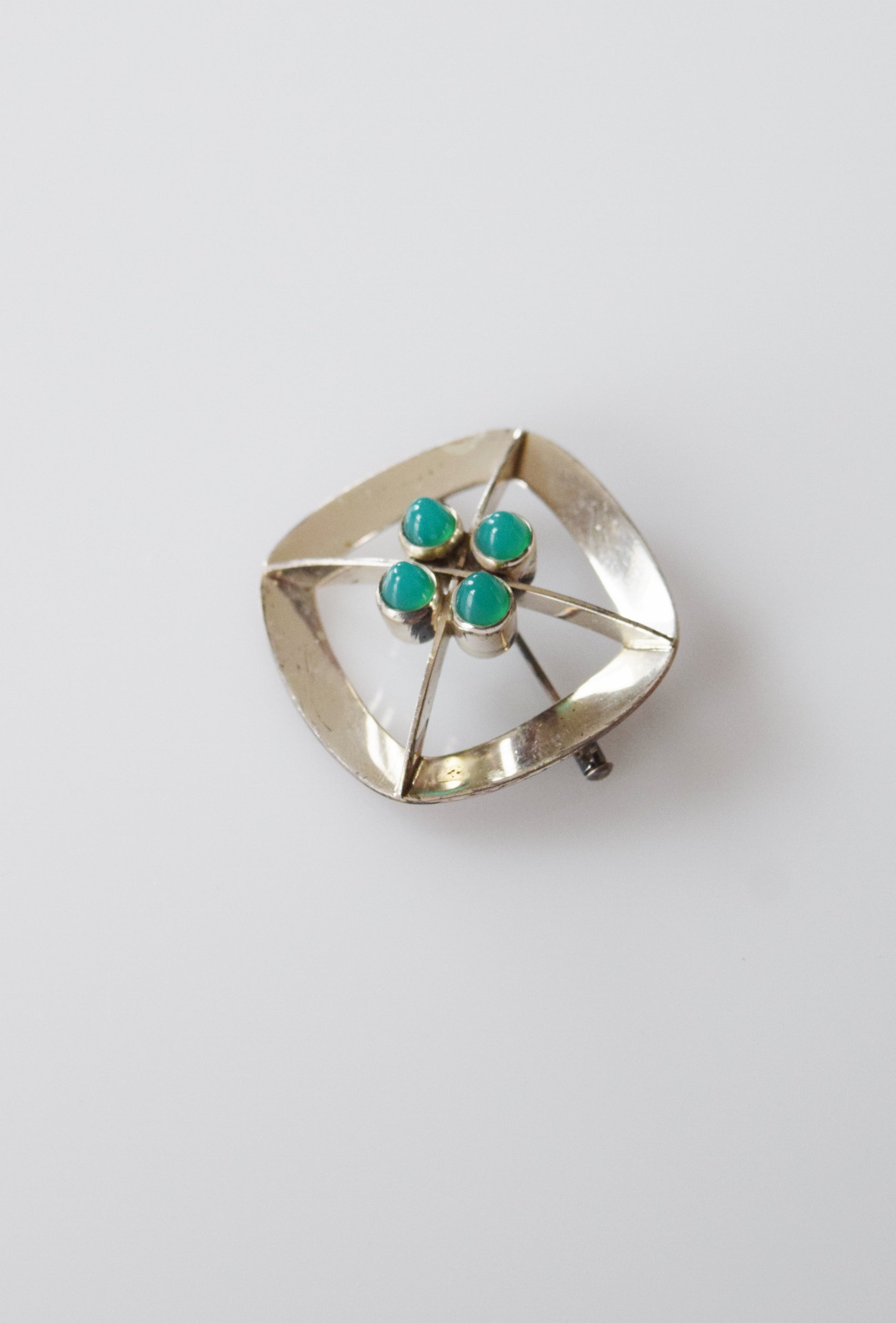 1970s Kultaseppa Solavaara Sterling + Agate Modernist Brooch