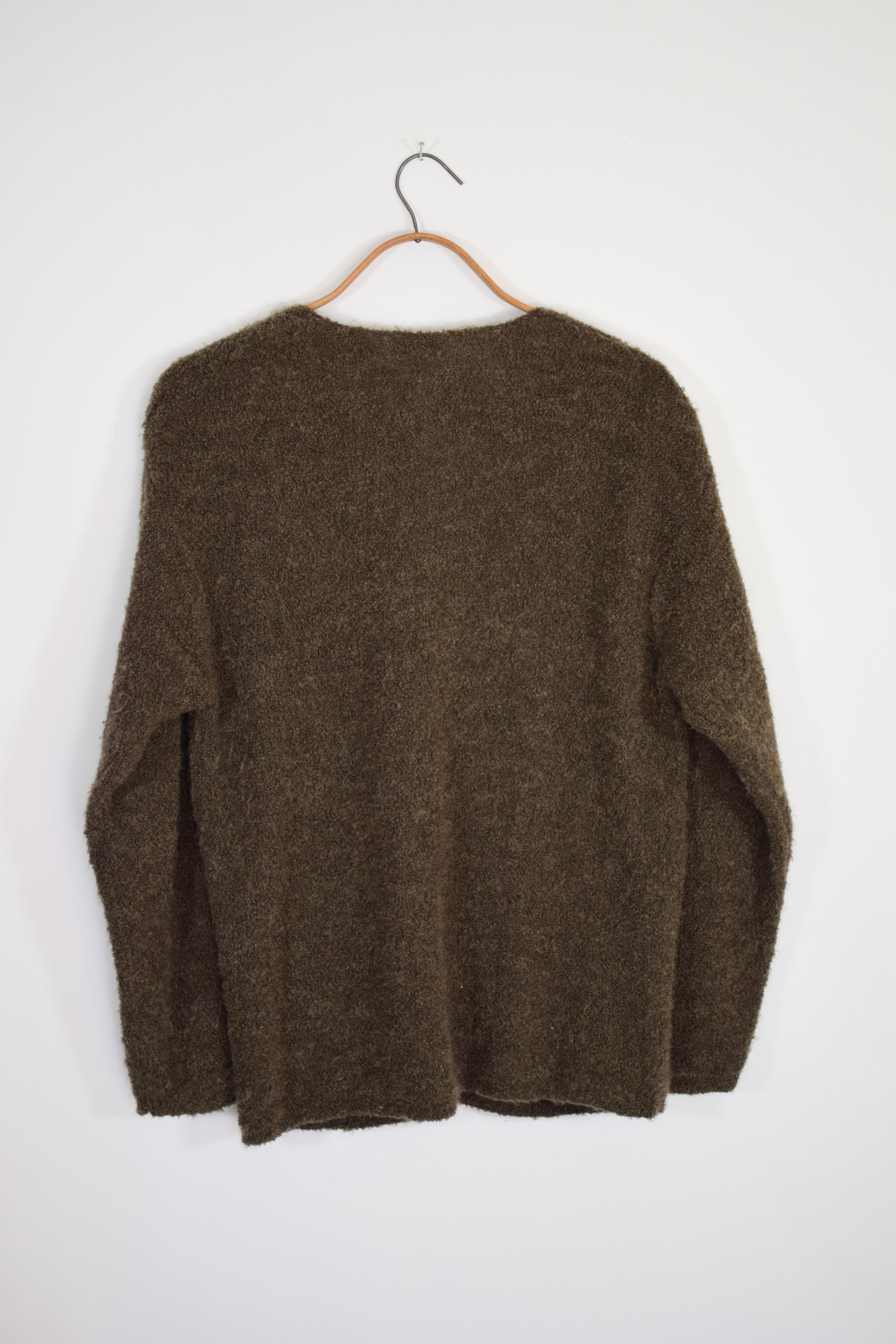soft and slouchy mocha brown nubby knit. long, boyfriend fit.