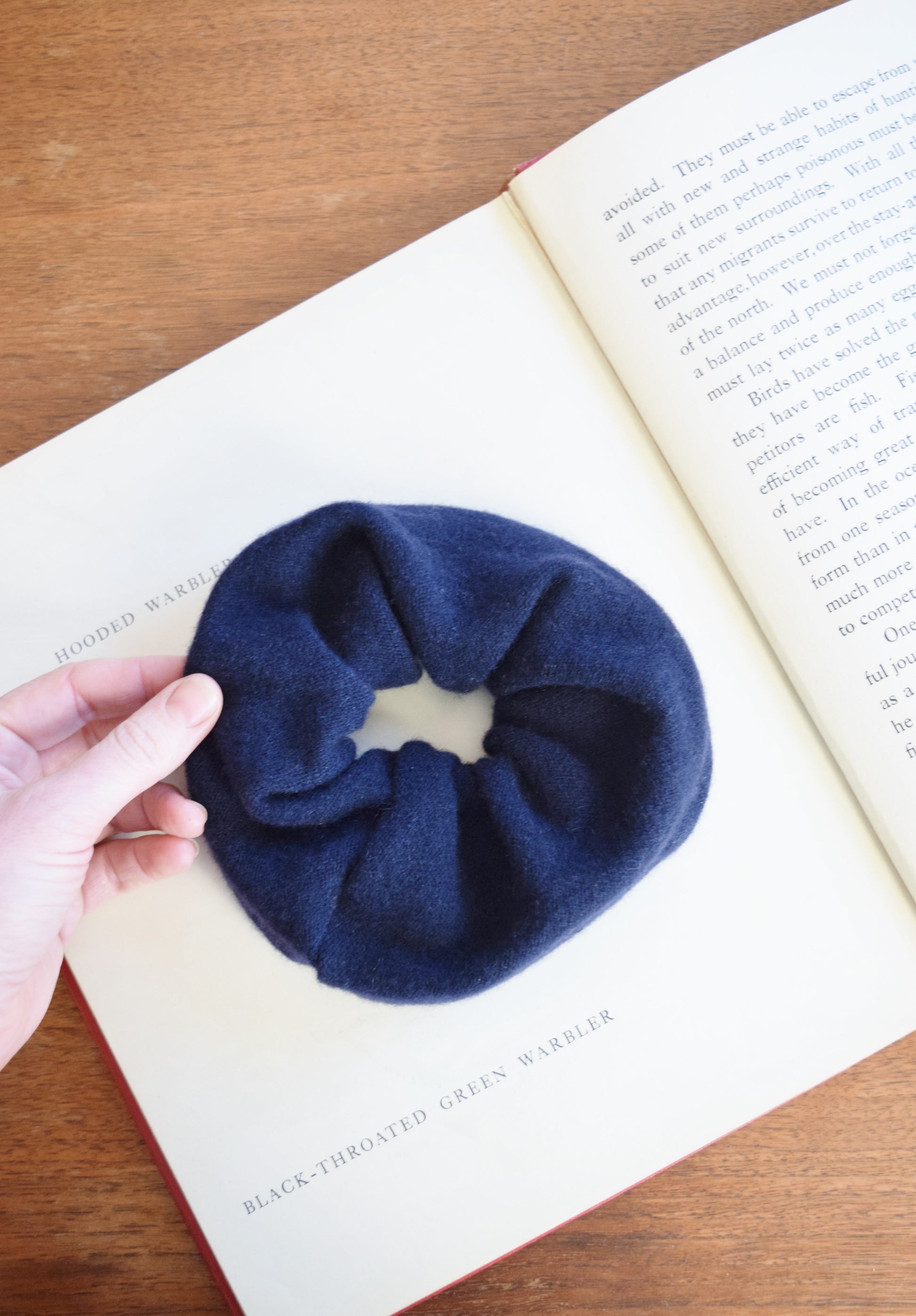 XLarge Cashmere Hair Tie in Navy Blue | Upcycled Scrunchie